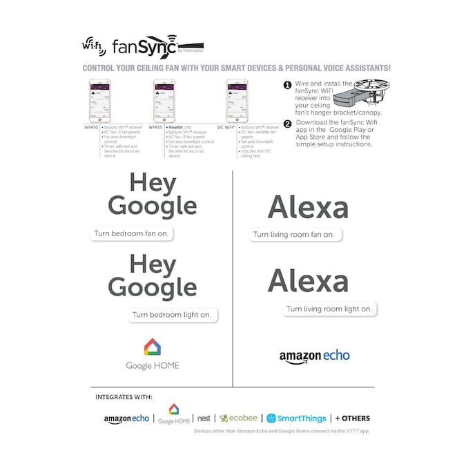 - TECHNOLOGY: WiFi connectivity, which allows the fan to pair with most smart home devices