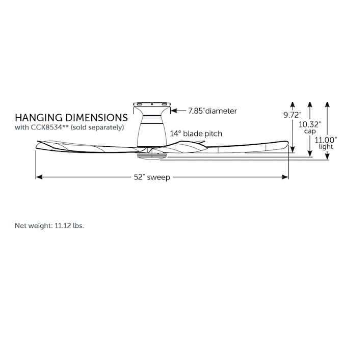 Kute is an understatement when it comes to this Fanimation ceiling fan. The Kute5 52 ceiling fan features 5 blades with a 52 inch sweep and multiple finish options. This ceiling fan is Damp rated for use inside or out and includes a handheld remote control. This Kute5 ceiling fan is a Flush mount with a Close to Ceiling Kit included. The optional LED light kit and smart home compatibility make this the perfect option for any home. fanSync WiFi receiver for smart home connectivity sold separately. Damp Rated for indoor or outdoor use, can be controlled using the Fanimation Bluetooth fanSync app and has reversible airflow for multi-season use.