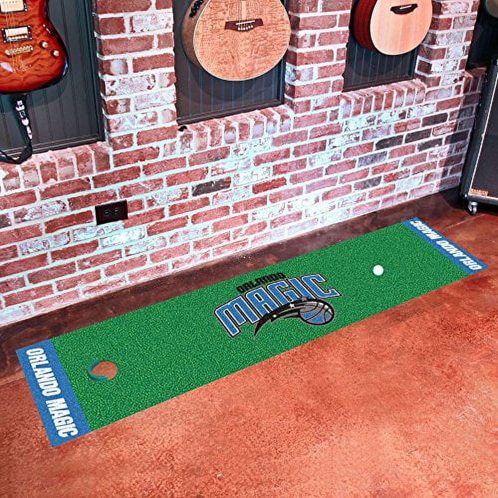 Practice your putting skills with this officially licensed putting green runner. The realistic putting surface is an 11 on the Stimp meter. Has a chromojet-printed nylon surface with vinyl backing. It can even be used as a runner when not practicing. Comes with plastic target and flag. Made By Fanmats