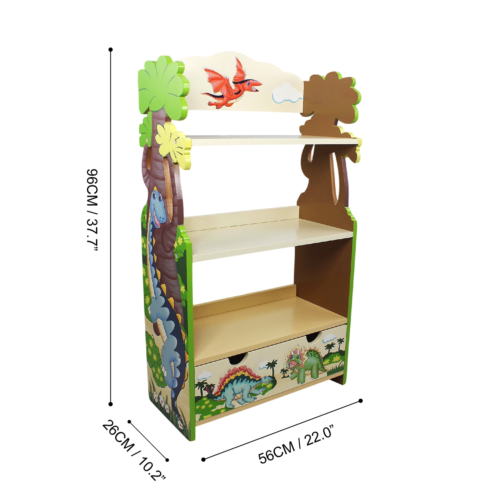 Fantasy Fields Dinosaur Kingdom Kids 3-Tier Bookshelf with Drawer