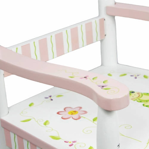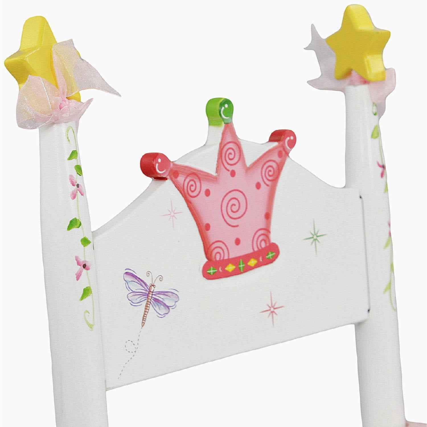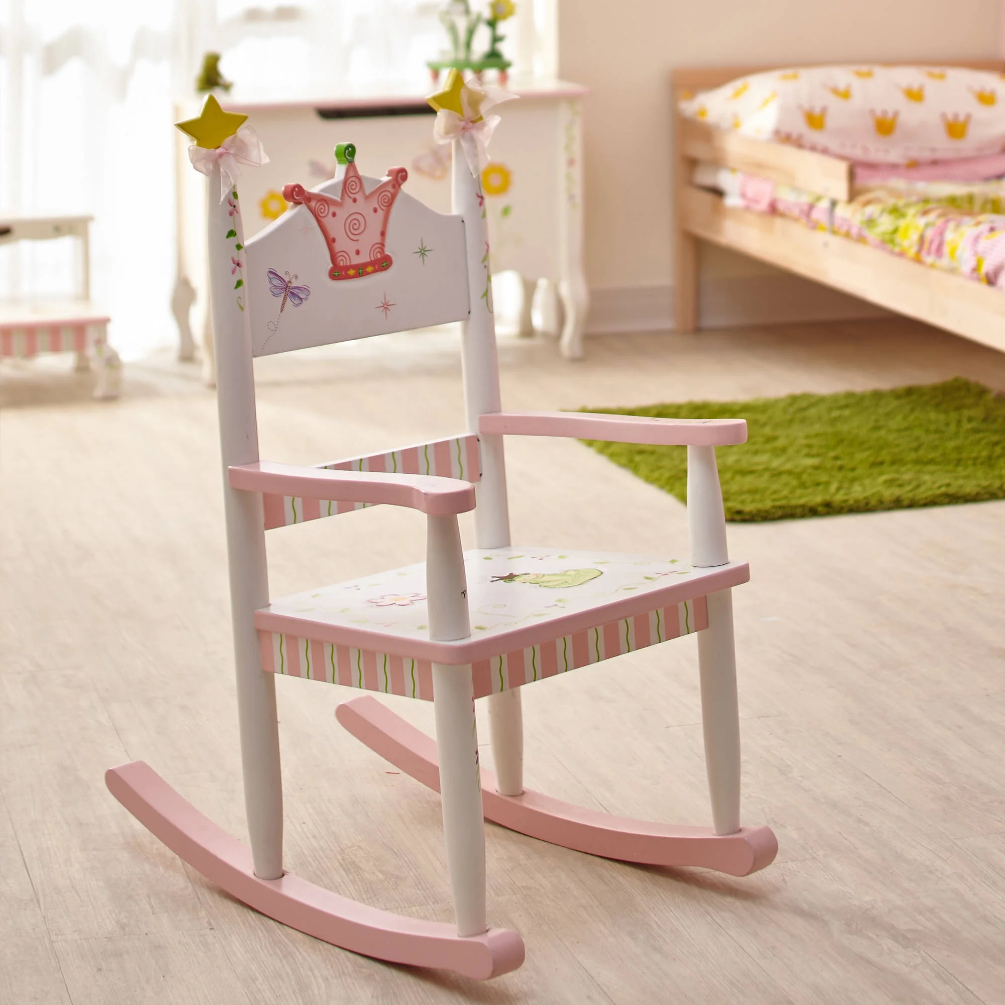 Have your little princess rock in luxury with the Fantasy Fields Princess and Frog Rocking Chair! With beautiful hand painted butterflies and a hand carved crown across the back. This piece is unique while it is built to last. Twinkling stars and bows are attached to the pools of the rocker to give it a girly and sparkling effect. This Chiar is perfect for kids and to place indoor.Some assembly required. Perfect for ages 3 and up. Teamson Kids has been manufacturing products for over 20 years using the highest quality materials and craftsmanship. We take pride in our children’s wooden furniture designs and strive to exceed all safety standards. Our beautiful pieces encourage your child’s imagination while seamlessly fitting into your home. Our Fantasy Fields by Teamson Kids pieces tap into whimsical design, magical craftsmanship, and original concepts that will create new playtime memories that will make their imagination soar into the clouds.