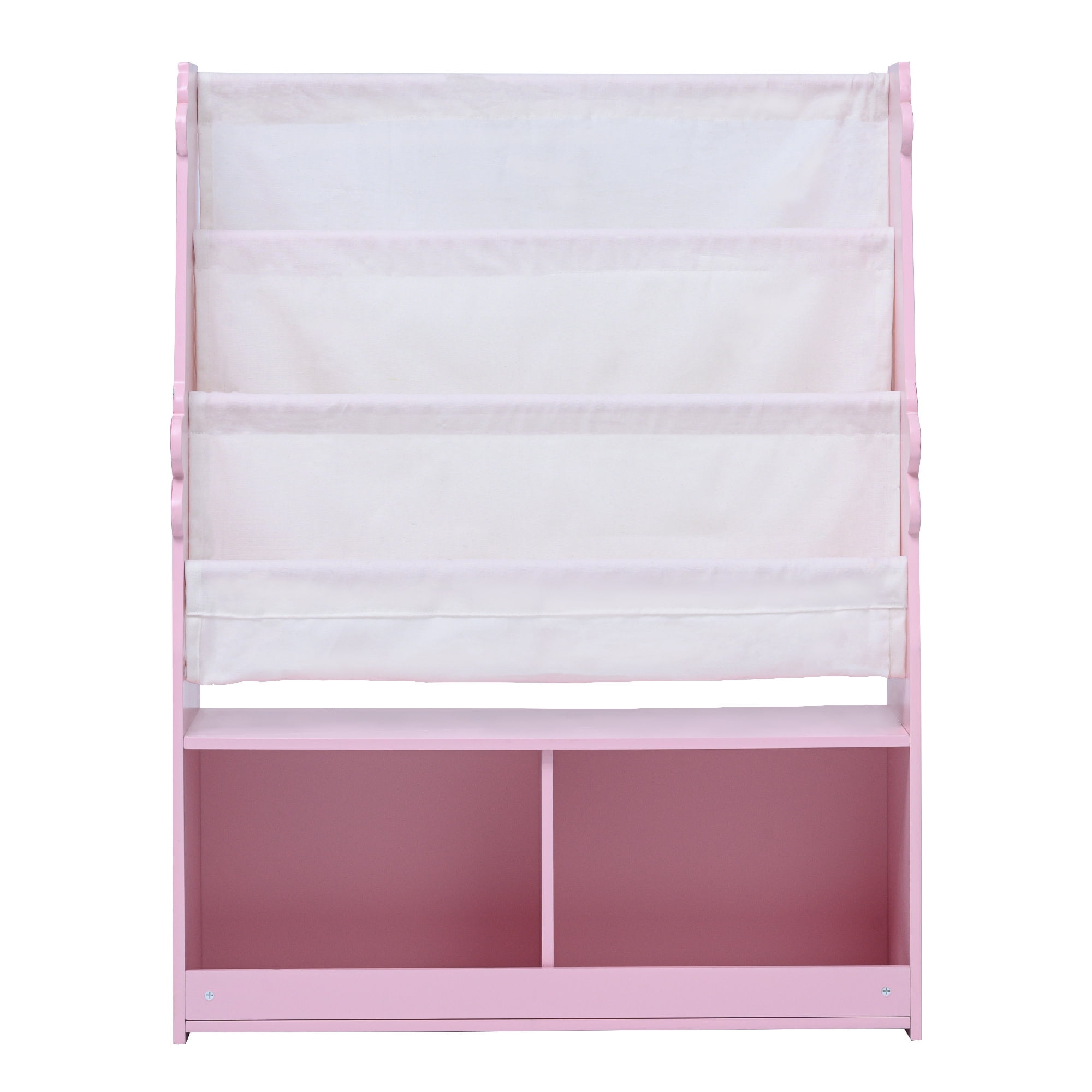 KIDS BOOKSHELF: Decorated with a magical display featuring friendly garden creatures for a whimsical playroom storage solution AMPLE STORAGE: 2 open shelves and 4 sling sleeves keep books organized and displayed for easy access DURABLE CONSTRUCTION AND EASY CLEANING: Constructed of durable wood with easy-to-clean surfaces for long-lasting use and easy upkeep COMPLETE YOUR COLLECTION: Purchase alone or with other items from the Magic Garden collection for a bright and joyful playroom KID-SIZED DIMENSIONS: Measures 33.75″ x 9.5″ x 31.75″ to fit in almost any bedroom or play area