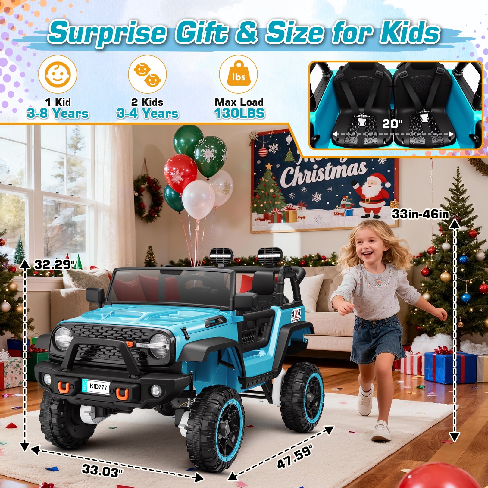 Powerful Power: Upgrade 4WD Remote Control & Manual Control Safety: Soft Start System & Seat Belts Entertainment: Bluetooth & Music Player Realistic Design: Electric Dump Bed & Shovel Features: ???? Electric Lifted Dump Truck: Ride on dump truck has a realistic look and comes with a liftable dump truck and shovel, kids can use the shovel to shovel sand and leaves into the dump bed and carry sand and leaves to add fun to the ride. In the yard, you can clean up dead leaves and branches with your parents and enjoy the time of parent-child interaction. ???? 4WD Powerful and Durable: Electric dump truck is equipped with 12V 7AH battery and 4*35W quad-drive motors, which are powerful enough to drive on asphalt, grass, gravel, concrete roads, and other complex terrains. ???? ???? Safe Entertainment Parallel: 12V Ride on toys have a full metal suspension, electronic power steering, and a soft start to ensure safety. Meanwhile, battery powered ride on cars are equipped with Bluetooth, built-in music, multiple ports (USB/AUX ports), lights, speakers, and an advanced interactive dashboard. The volume can be adjusted, and there are forward and reverse switches and a one-touch start function for unlimited joy. ???? Comfortable and Safe Single Seat: Dump truck ride on, designed for children ages 3-6, is 14 inches wide in a single seat and easily accommodates children weighing up to 66 LBS. The seat features a three-point harness and is very comfortable, providing a great ride for your little one. ???? Two Driving Modes: Electric car for kids come with two driving modes. Children can drive independently with two speeds adjustable from 1.8-3.1 MPH for real driving fun. Parents can also control it by remote control, three adjustable speeds, and an emergency brake function can ensure children’s safety. ???? Best Gift for Kids: Dump truck is the best gift for your child’s birthday, New Year, Christmas, and other festivals, giving your child a special and unforgettable childhood memory.