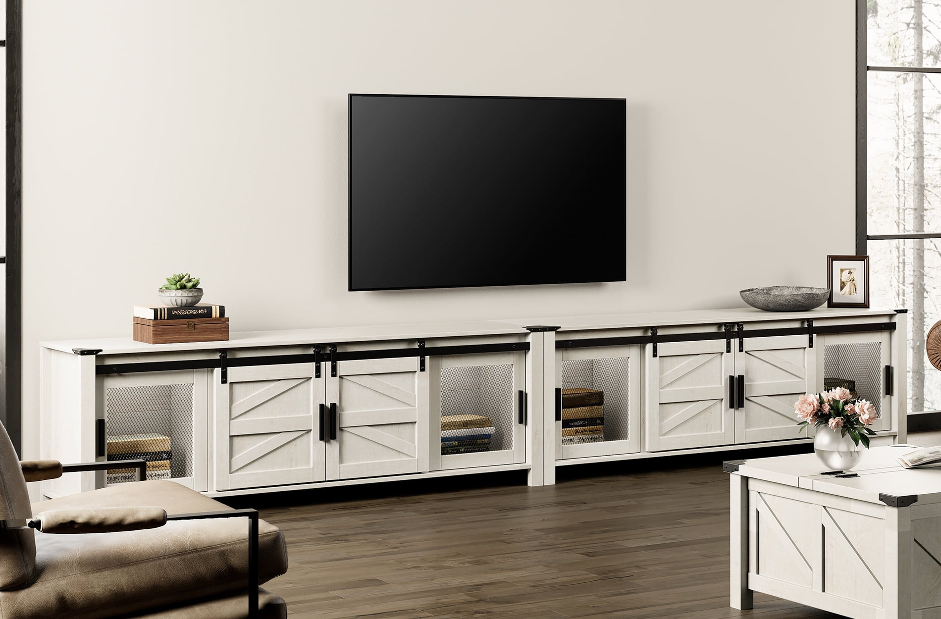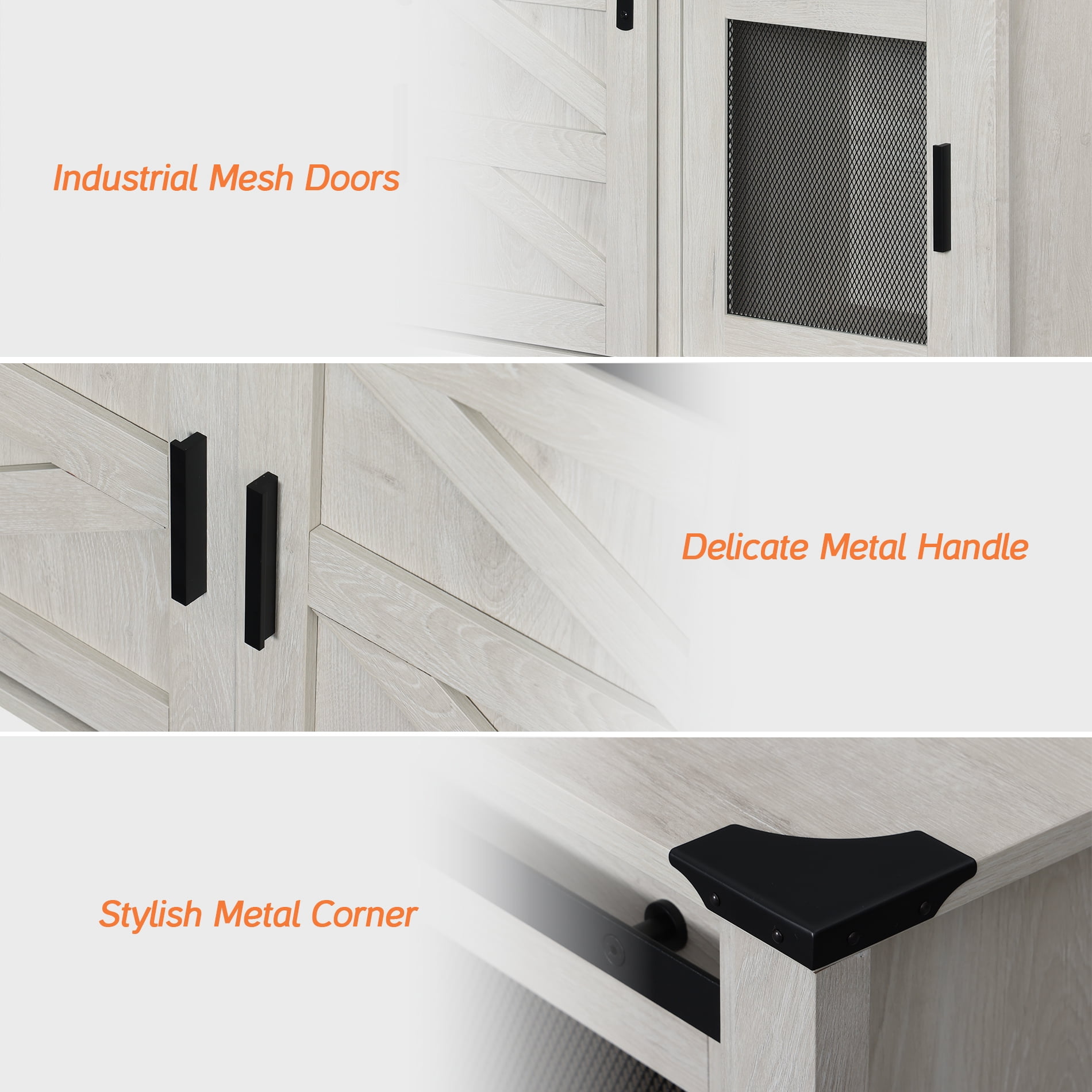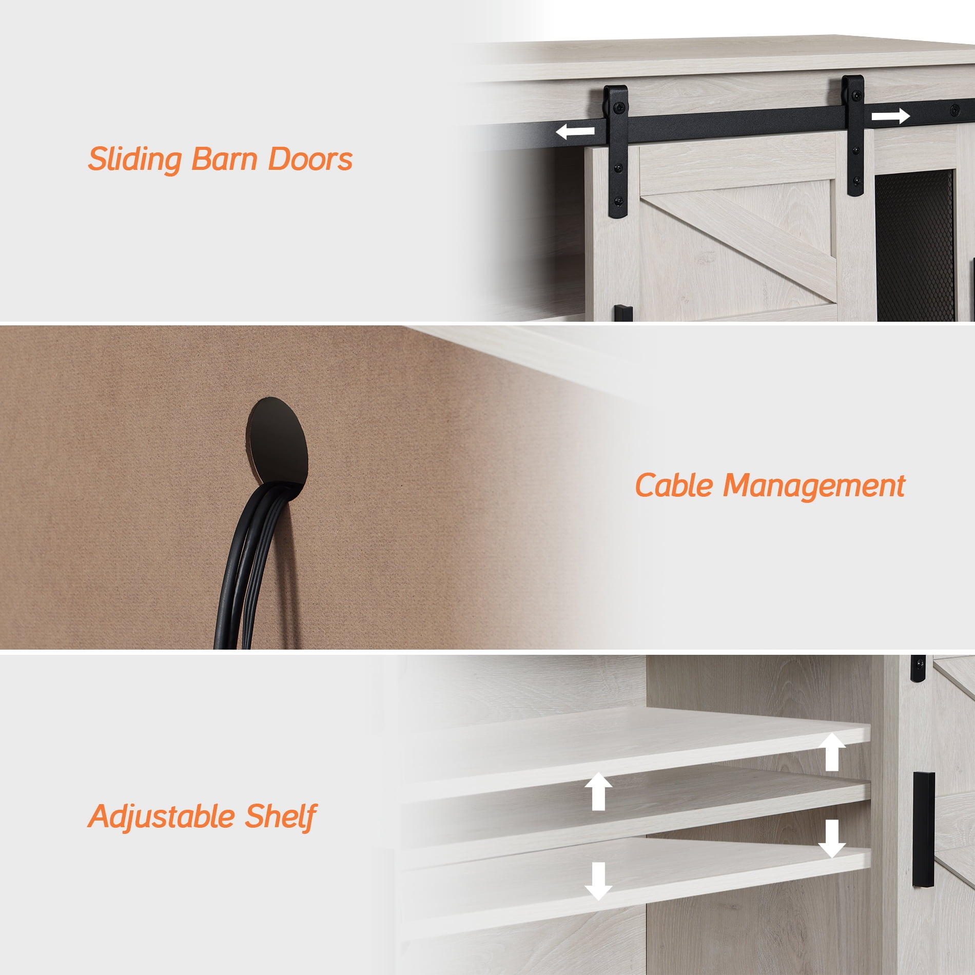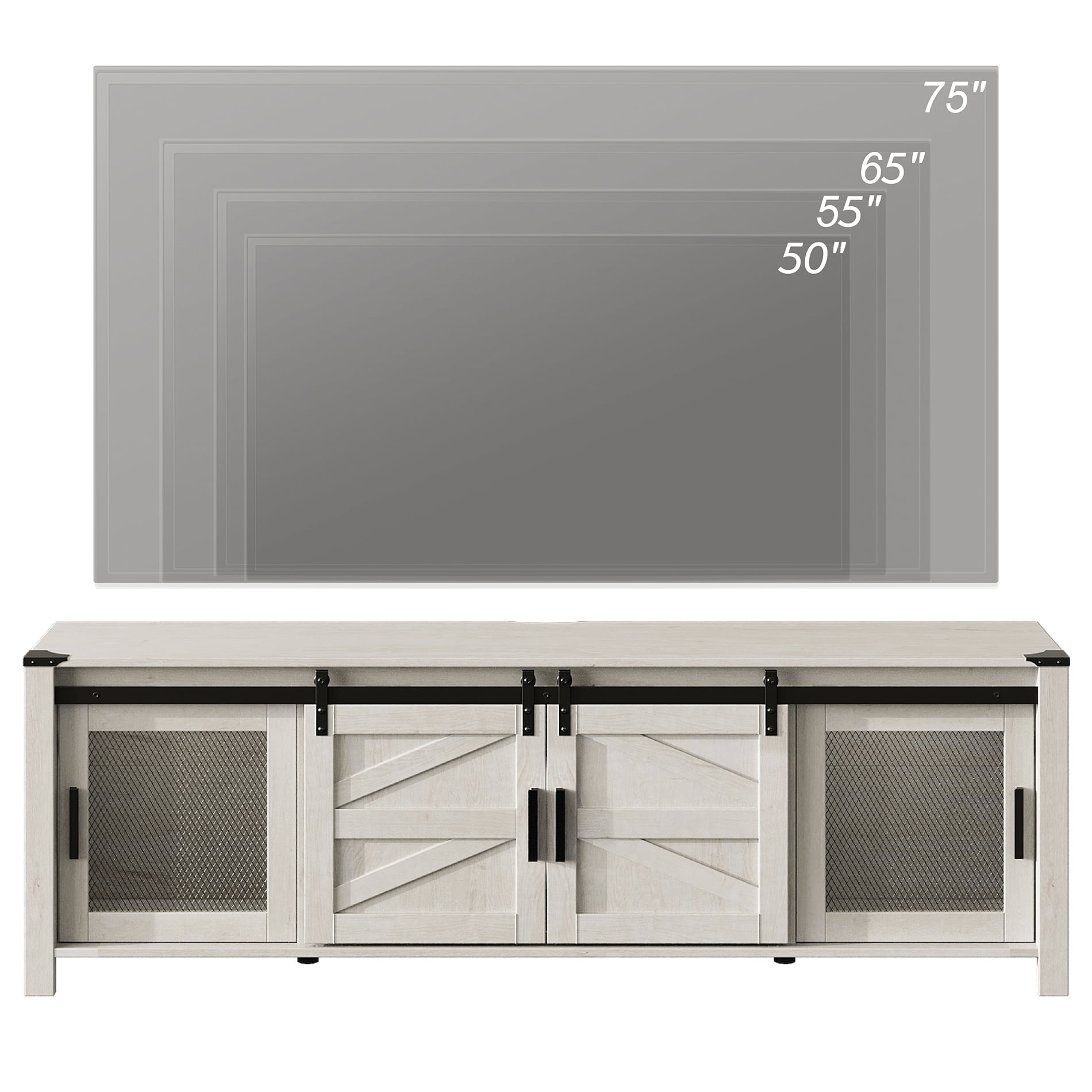 Farmhouse Modern Wood Entertainment Center for 75 Inch TV, Media TV Console with Sliding Barn Door and Storage Shelf for Living Room Bedroom,Wihte