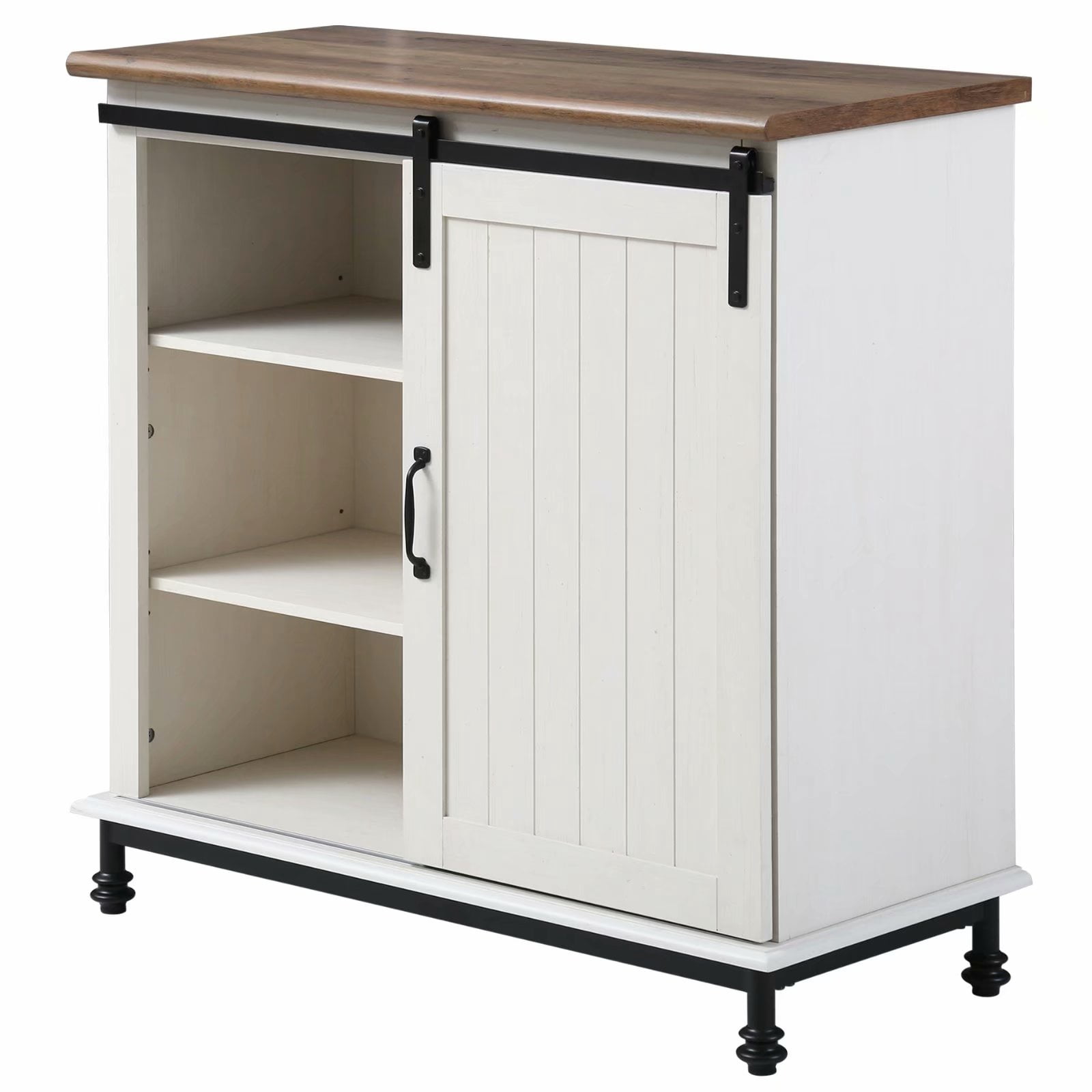 【Sturdy and Durable】: Composed of high grade MDF material makes it stable. The wooden storage cabinet is surely your reliable helper in refreshing your home to a neat and organized place. Perfect for Diningroom, Entryway, Living Room, Kitchen, Bedroom etc. 【Smoth Sliding Barn Door 】Designed with slide rail and retro black metal hardware for easily push and pull, which does a good job of saving space and thus is great for small rooms. 【Multifunctional Cabinet & Adjustable Shelf】: Featuring the height adjustable shelves, you can adjust it by removing the board directly according to your needs. 【High Load Capacity】This buffet cabinet boasts a load capacity up to 99lb on the top, 66lbs on the bottom board and 33lb on each of the three adjustable shelves .You can store all the items with a total weight up to 250 lbs approximately. 【Easy to Assemble】A Clear instruction is included, which has straightforward illustrations and descriptions. Each screw and pin has its own code and boards are clearly labeled to let you easily understand the assembly progress. In case of any problem or you are not satisfied, please tell us without hesitation, we will try our best to solve your problem and provide professional service.