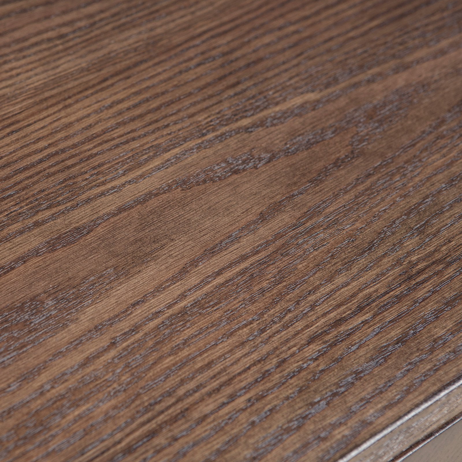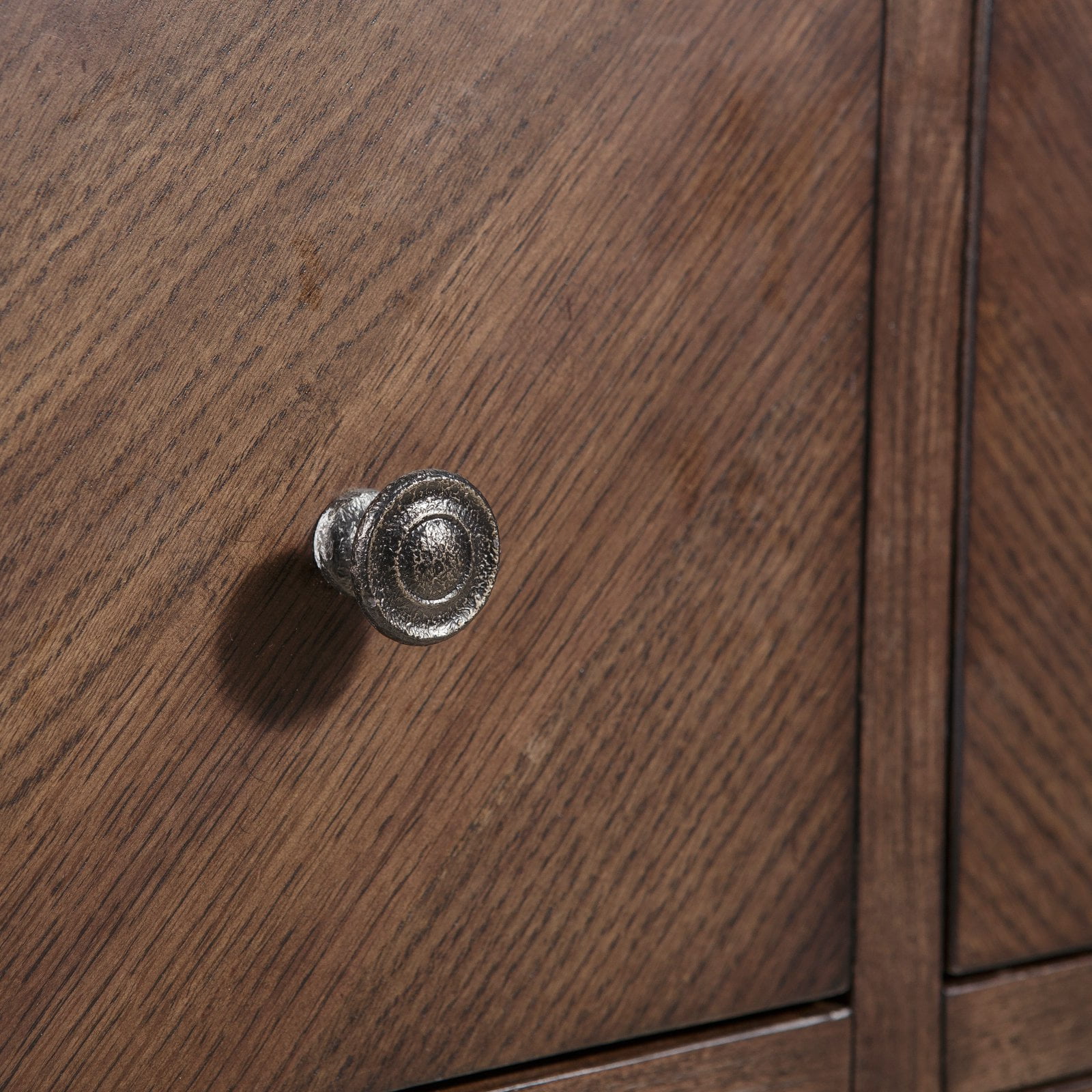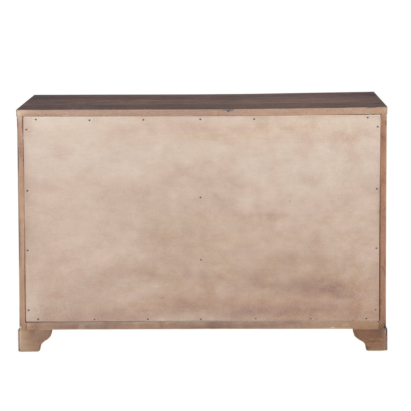 Dimensions: 46W x 14D x 32.05H in. Sturdy wood and metal construction Warm brown finish Burnished brass hardware 6 drawers for storage Assembly required