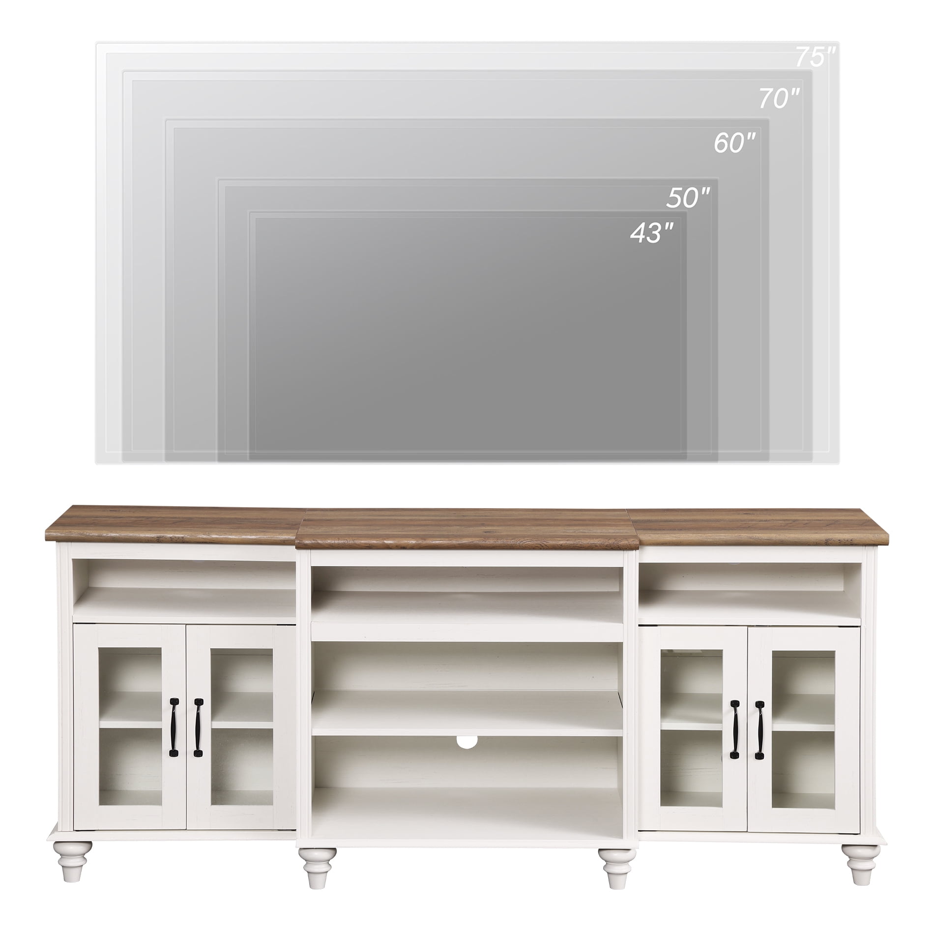 Farmhouse TV Stand with 4 Glass Doors for TVs up to 75”, Highboy Entertainment Center with 9 Storages, 70” Wood TV Console for Livng Room Bedroom, Antique White
