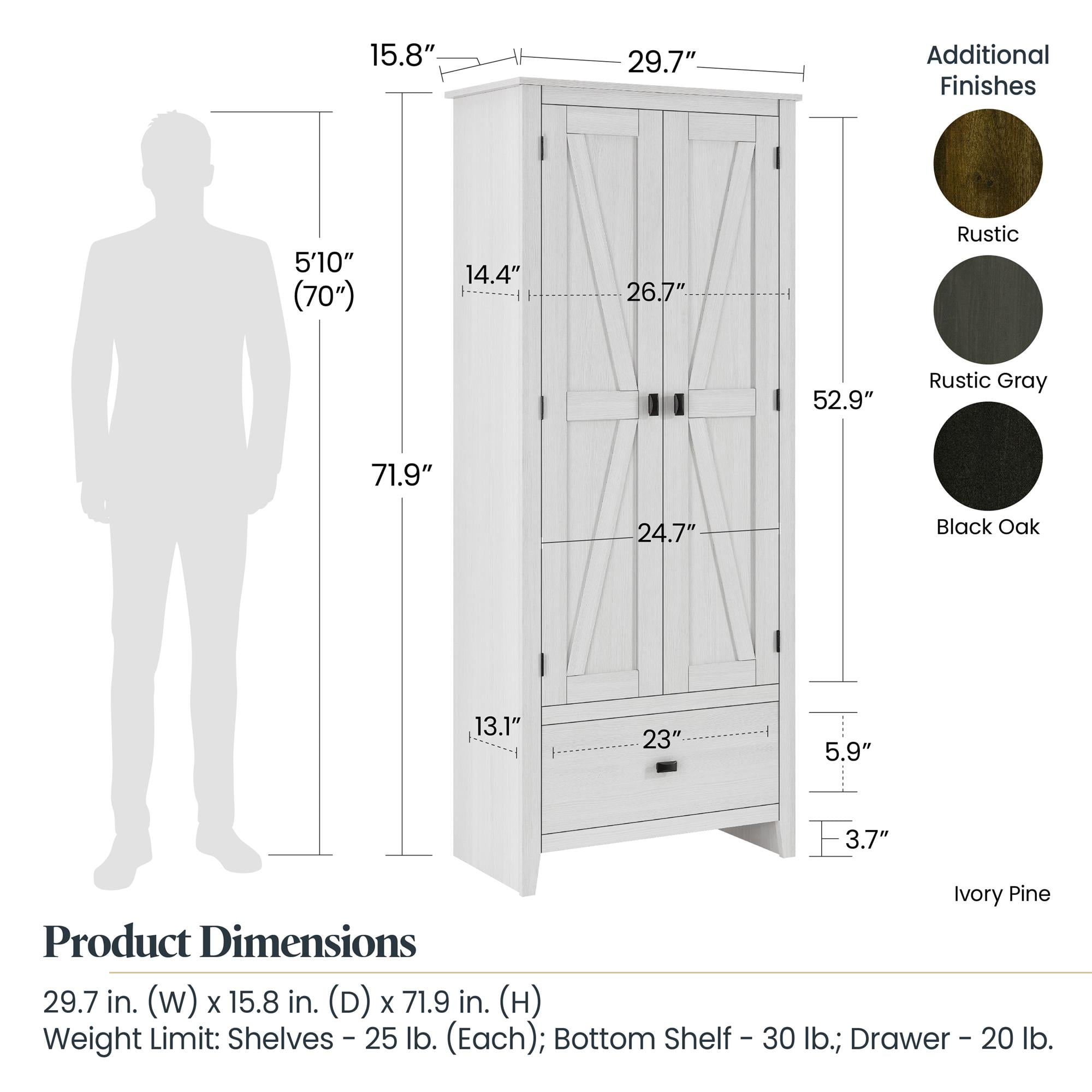 Organize your living space with the help of the Systembuild Evolution Farmington 30″ Wide Storage Cabinet Finished in a weathered brown with gray undertones, this laminated particleboard and MDF cabinet is perfect for any rustic, cottage, shabby chic or casual spaces Behind 2 doors are 4 shelves (3 adjustable) to keep items organized from office supplies to nonperishable foods and extra linens Coordinate your space with additional Farmington Systembuild Evolution Cabinets or Ameriwood Home Farmington bedroom and living room items. Choose from multiple rustic finishes