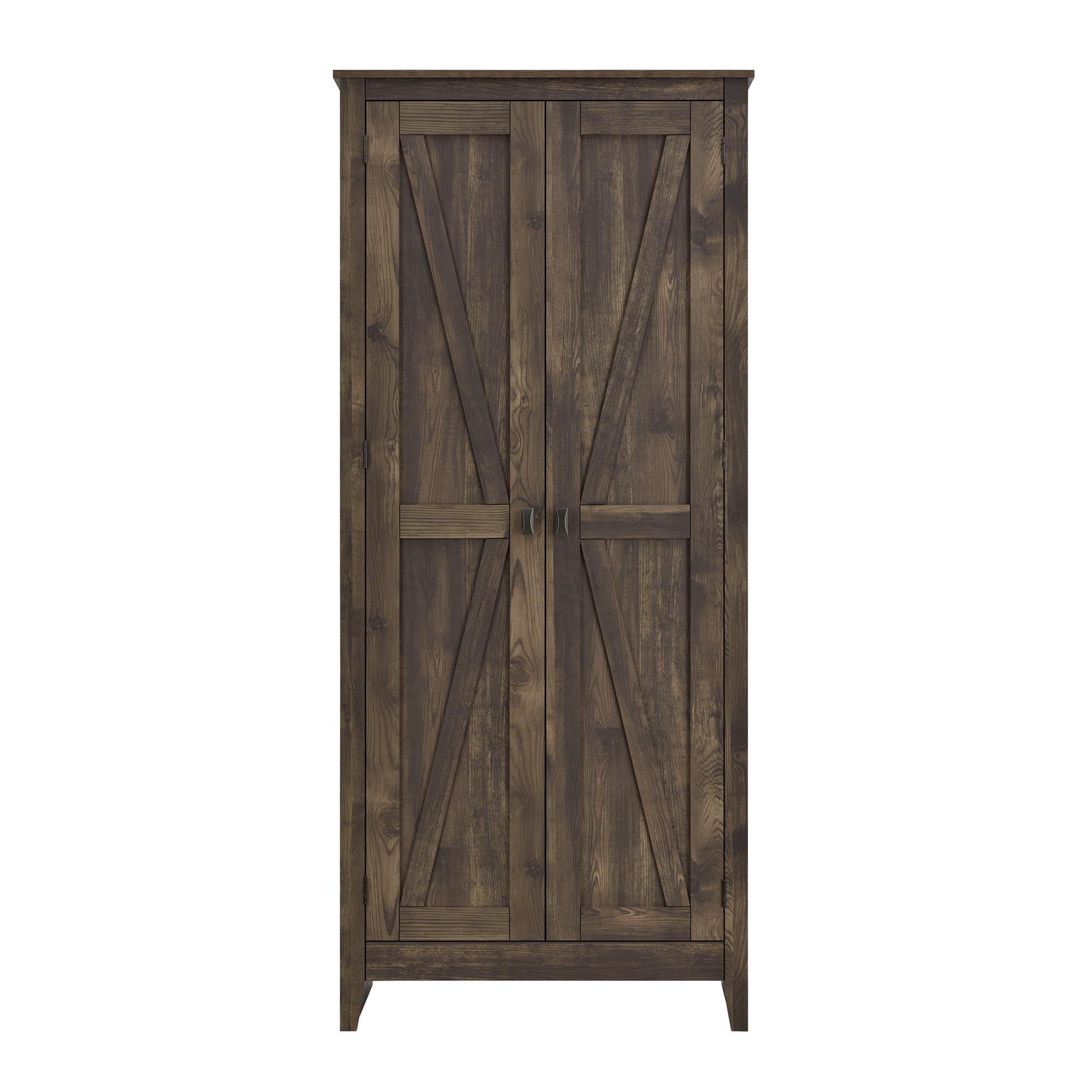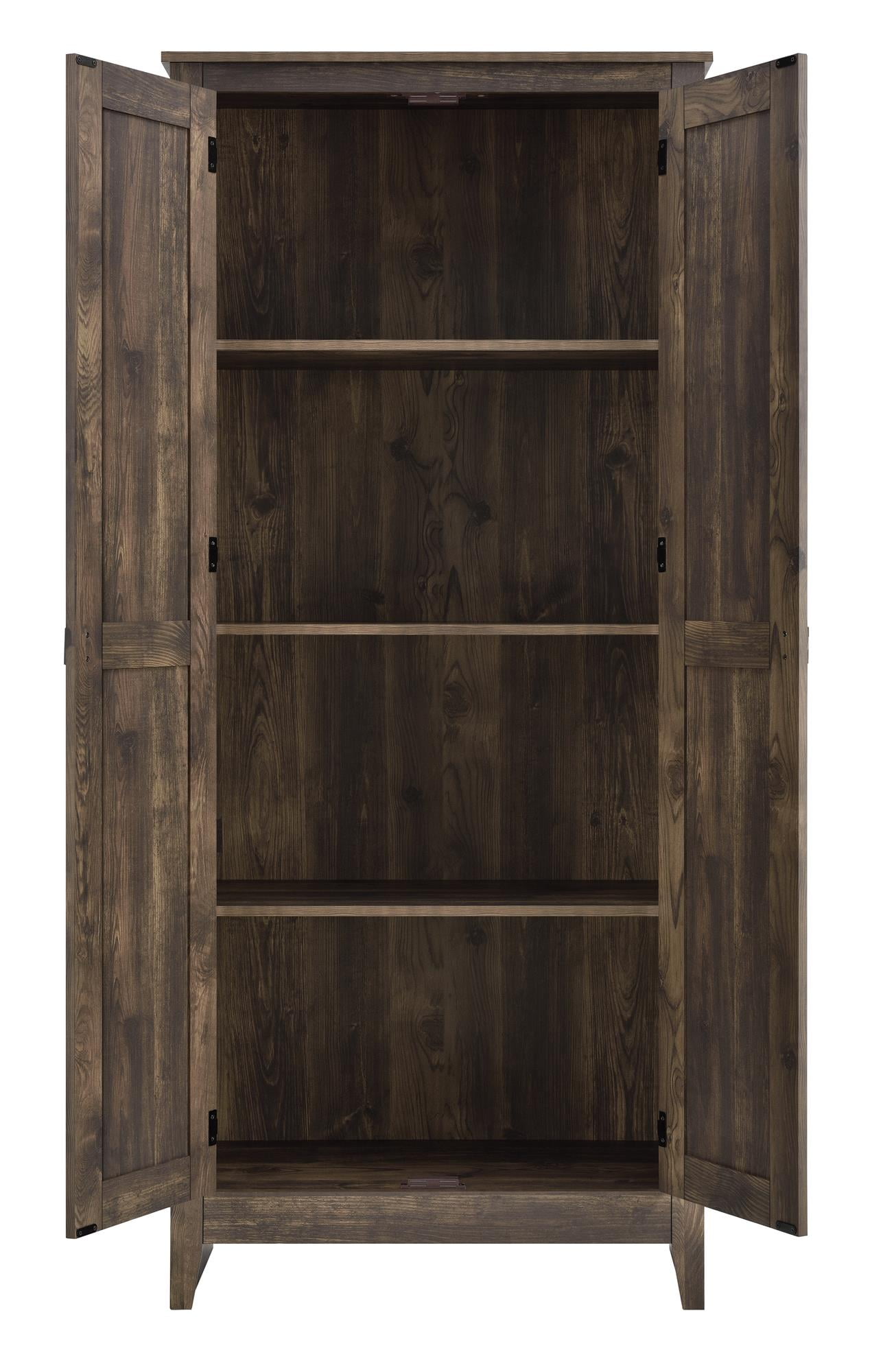 Organize your living space with the help of the Systembuild Evolution Farmington 31.5″ Wide Storage Cabinet Finished in a weathered medium brown, this laminated particleboard and MDF cabinet is perfect for any rustic, cottage, shabby chic or casual spaces Behind 2 doors are 4 shelves (2 adjustable) to keep items organized from office supplies to nonperishable foods and extra linens Coordinate your space with additional Farmington Systembuild Evolution Cabinets or Ameriwood Home Farmington bedroom and living room items. Choose from multiple rustic finishes