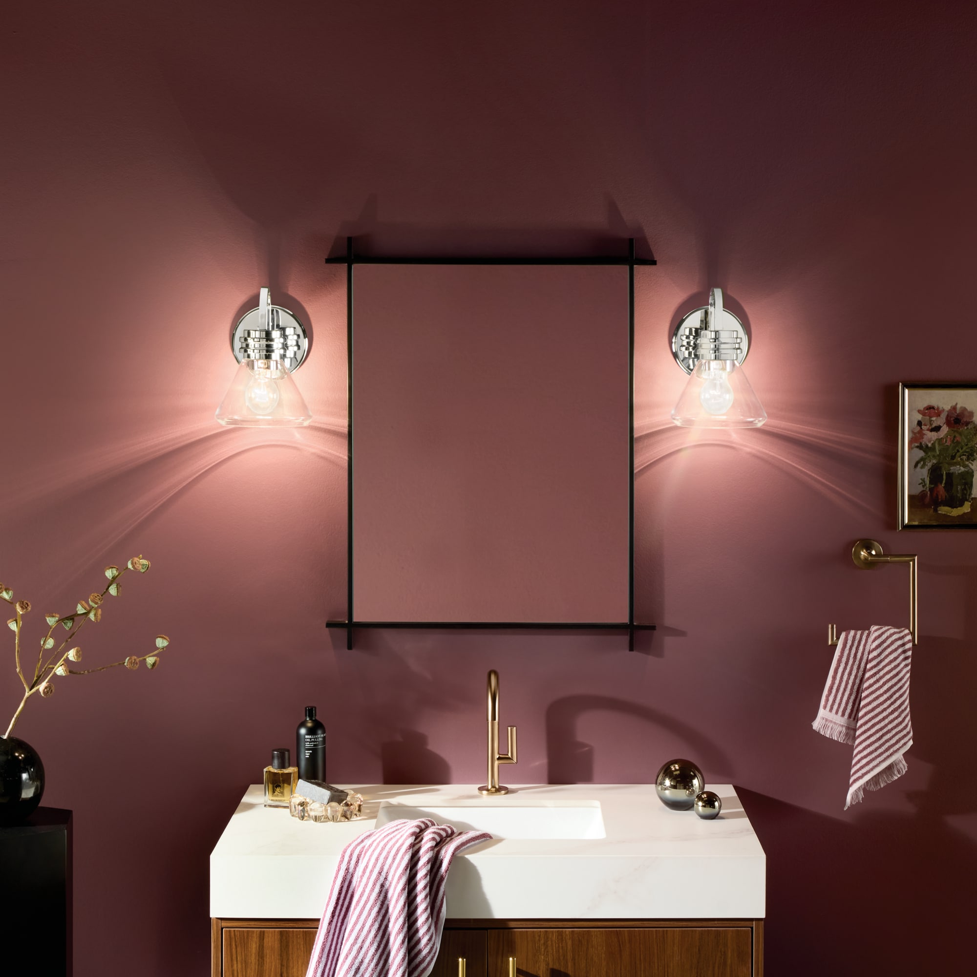 With its refined shape, the Farum 1-light wall sconce is ideal for any setting. Taking its inspiration from the structural elegance of military jacket tailoring, Farum’s clean frame showcases subtle stepped detailing and its clear glass provides ambient lighting to the entire room. It easily incorporates into a variety of environments including modern.