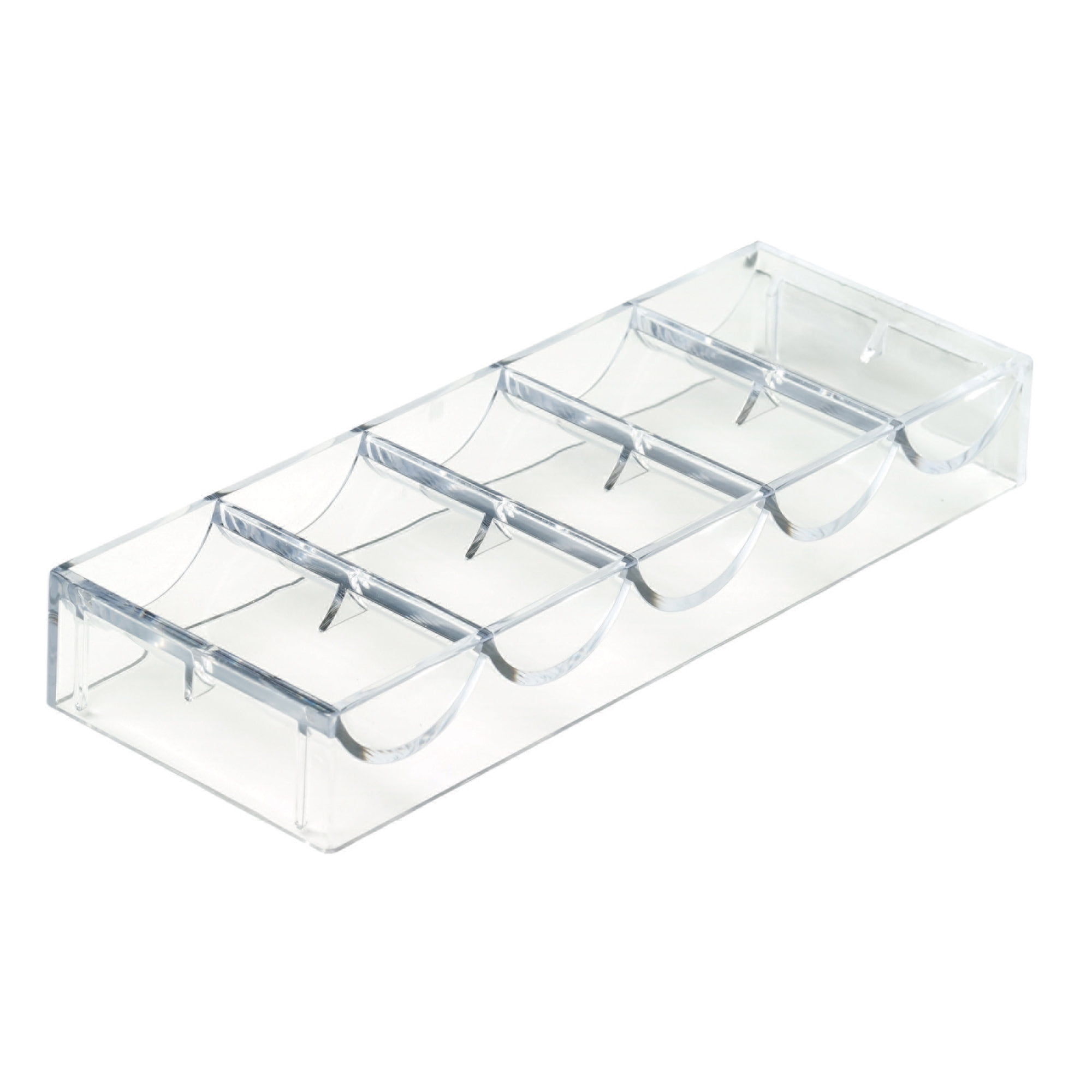 Roll high and come out hot with the Fat Cat Four Deck Card Shoe, Fat Cat 500Ct Texas Hold’Em Dice Poker Chip Set, Poker Chip Tray- 2pc., and Fat Cat Dice Cup & Dice Bundle! With this deluxe collection, every Poker Night at your place will feel like a bona fide high-stakes Vegas showdown! The Texas Hold’Em Dice Poker Chip Set brings Fat Cat quality to any game you host. It consists of 500, 11.5 gram Claytec chips, two decks of standard playing cards, all the necessary buttons (big blind, little blind and dealer), a set of poker dice, and a dapper aluminum carrying case in which to store it all. Also included is the Four Deck Card Shoe. Virtually indistinguishable from the kind used by Vegas dealers, the shoe holds up to four decks to minimize shuffling time between games. Its clear, straightforward design also keeps every game fair by preventing the dealer from using any sleight-of-hand tricks. The bundle also comes with a leatherette dice cup, which boasts both a reinforced bottom to withstand stronger players and a green cloth interior to ensure each roll of the dice is left only to chance. Rounding out the bundle are five extra dice and two 100-count stackable chip trays.