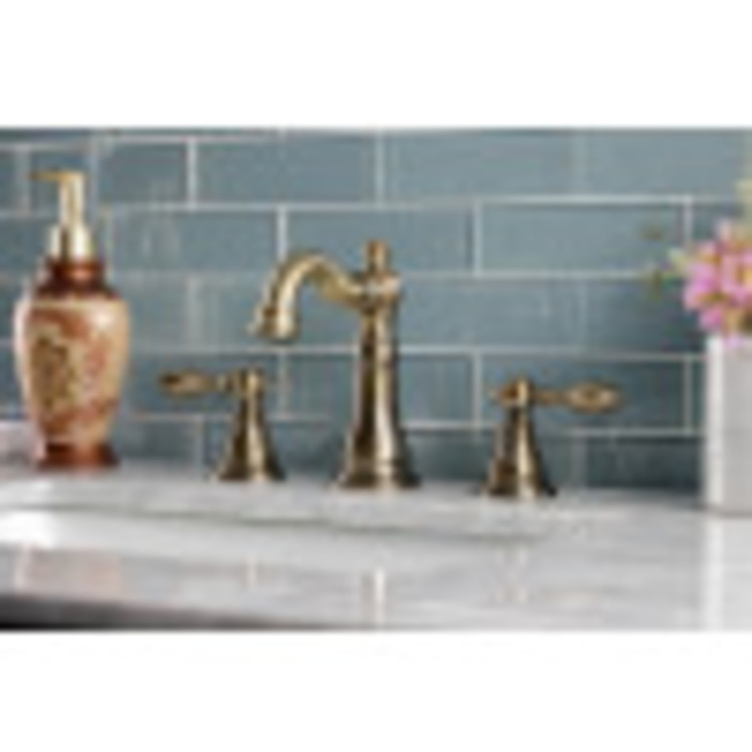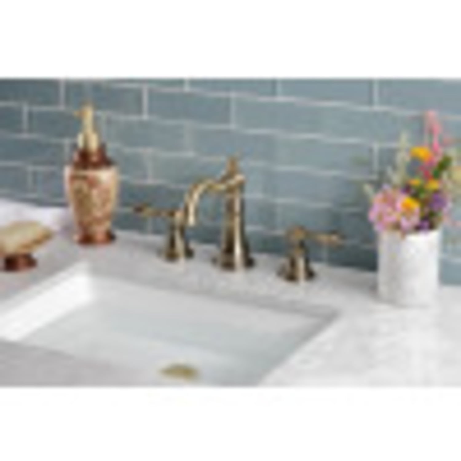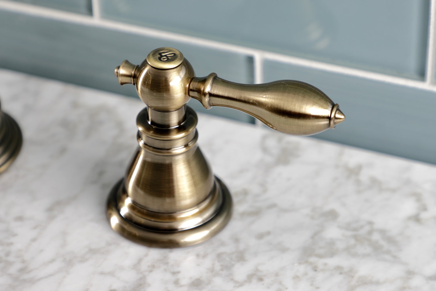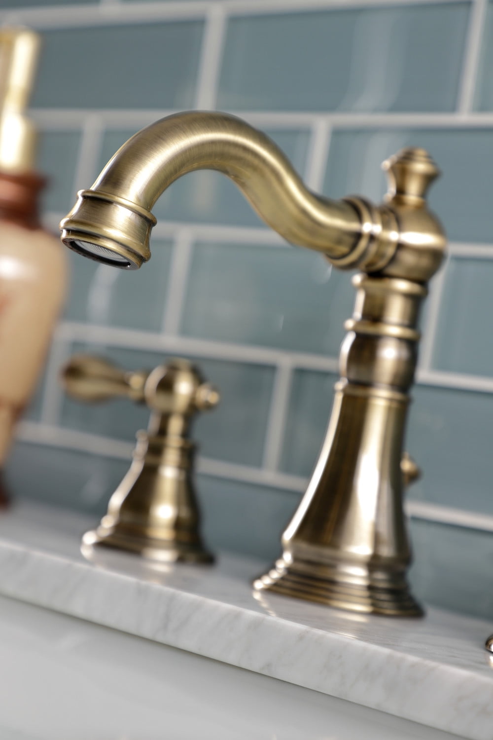 Fauceture FSC19733ACL American Classic Widespread Bathroom Faucet, Antique Brass Solid brass construction Drip-free ceramic disc cartridge Deck mount 8″ to 16″ widespread 3-hole installation 1.2 GPM/4.5 LPM spout flow rate at 60 PSI Standard 1/2″ IPS connection 3-15/16″ spout clearance 5-3/16″ spout reach Includes matching pop-up drain Dual lever handles meet ADA guidelines Corrosion-resistant finish