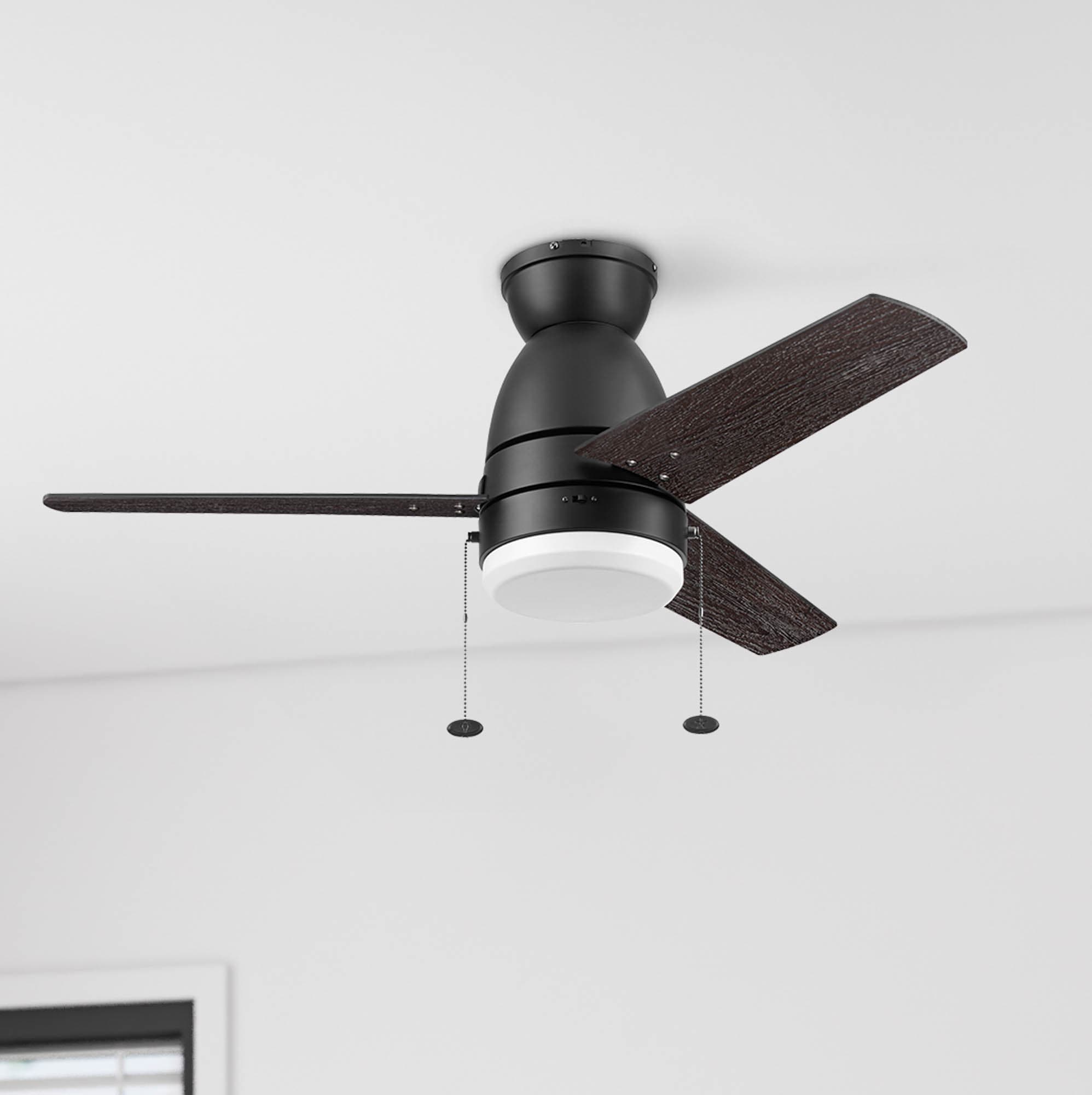 This 44 inch outdoor ceiling fan is perfect for a small to medium room upgragde as it fits naturally into a range of décor styles including modern, contemporary, farmhouse, industrial, and more. The Fawn features a contemporary shape with a lightly frosted shade providing 1600 lumens from 2 bulbs that are dimmable 10% to 100%.