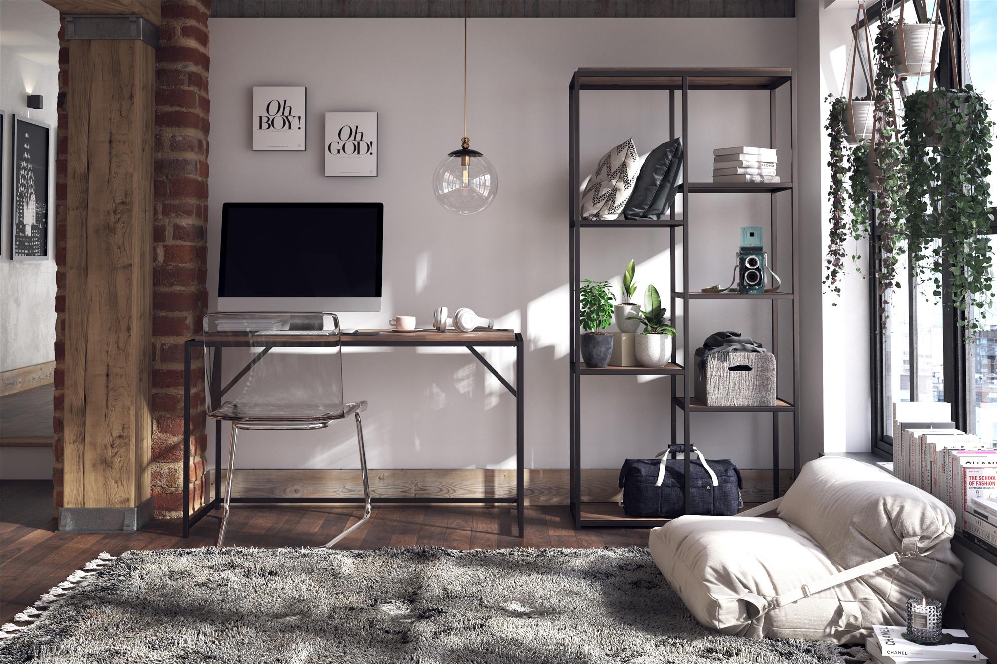 The Ameriwood Home Fayette 5-Shelf Bookcase offers plenty of storage without sacrificing style. It’s the perfect look for memorabilia or books, or mix match between the two. The asymmetrical look will give you a unique way to express your personality and show off your collections. A wall anchor kit is included to secure the bookcase to the wall and prevent tipping injuries. The woodgrain finish on the laminated particleboard will look gorgeous with the sturdy metal frame. Keep it in your home office, living room or bedroom, it’s so stylish it fits anywhere in your home. This bookcase ships flat to your door. Two adults are recommended for assembly. Assembled dimensions: 33.94″W x 14.25″D x 70.75″H. Each shelf supports up to 25 lbs. with the bottom supporting up to 50 lbs.