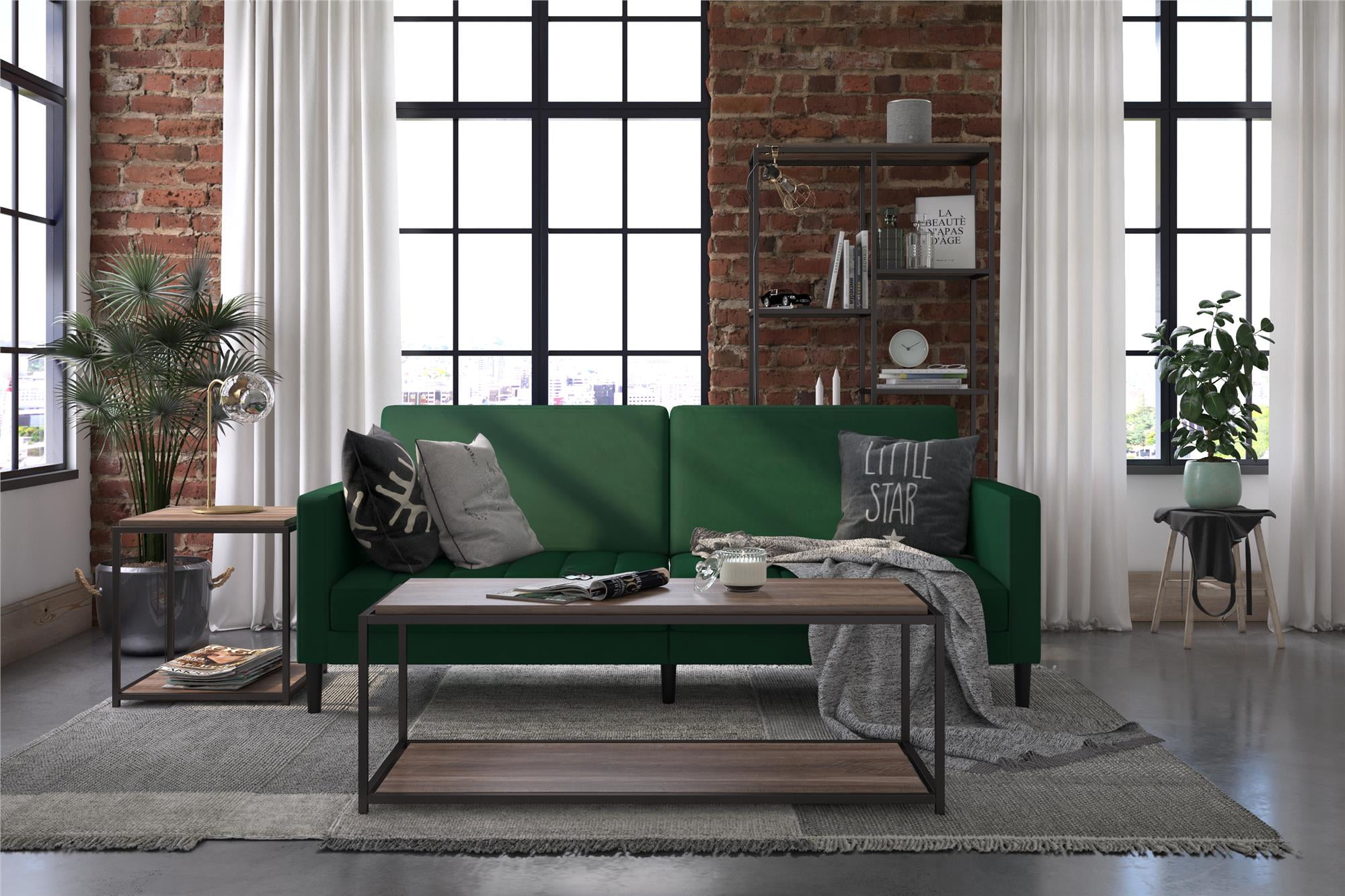 MODERN COFFEE TABLE: Complete your living room with the ultra-modern Coffee Table from Ameriwood Home Fayette DISTRESSED WOODGRAIN DESIGN: Crafted from laminated engineered wood with a sturdy metal frame, this coffee table features a distressed woodgrain finish SPACIOUS TABLETOP: Keep essentials within reach on the generously sized tabletop FLOATING TABLETOP DESIGN: Achieve a high-end look without breaking the budget with the floating tabletop design