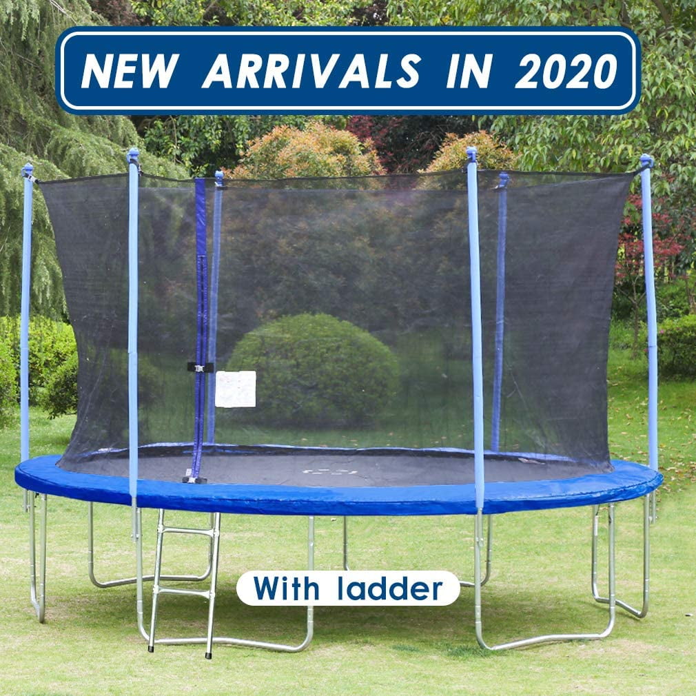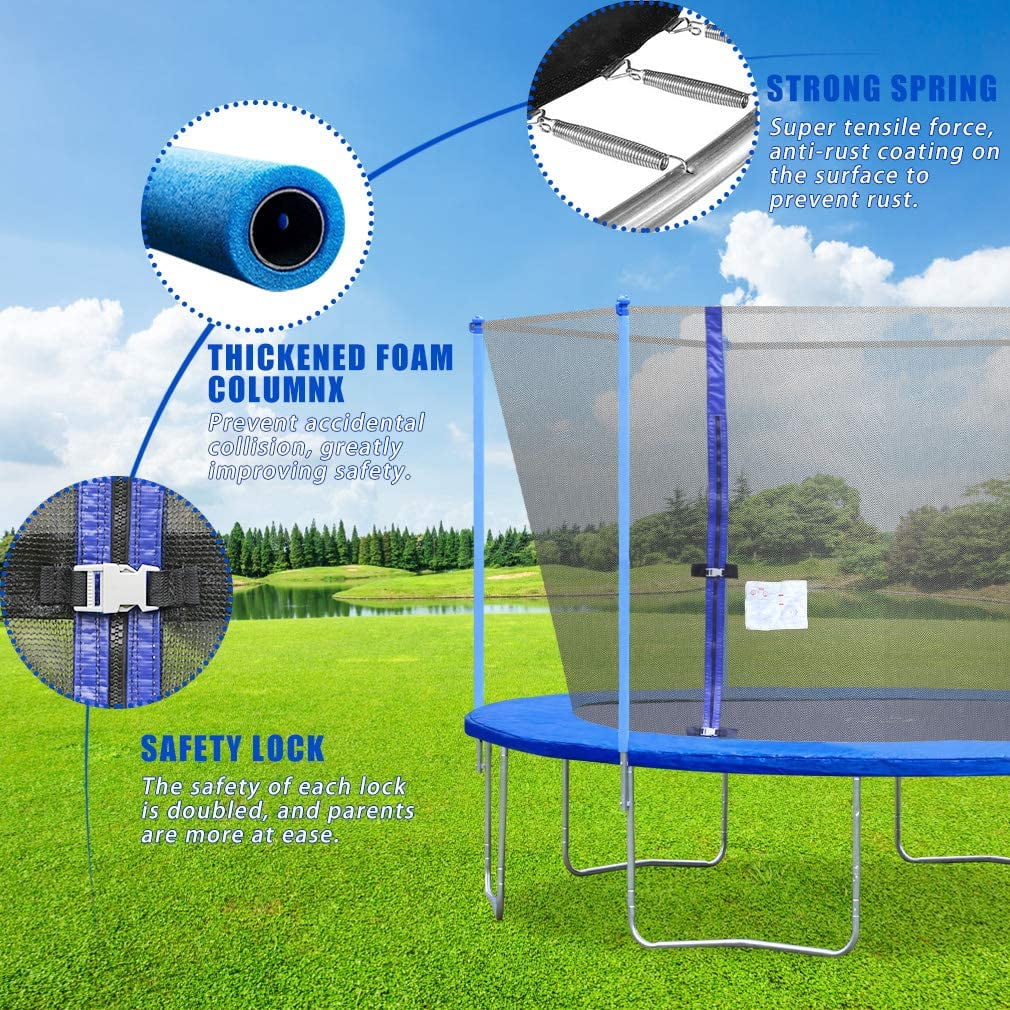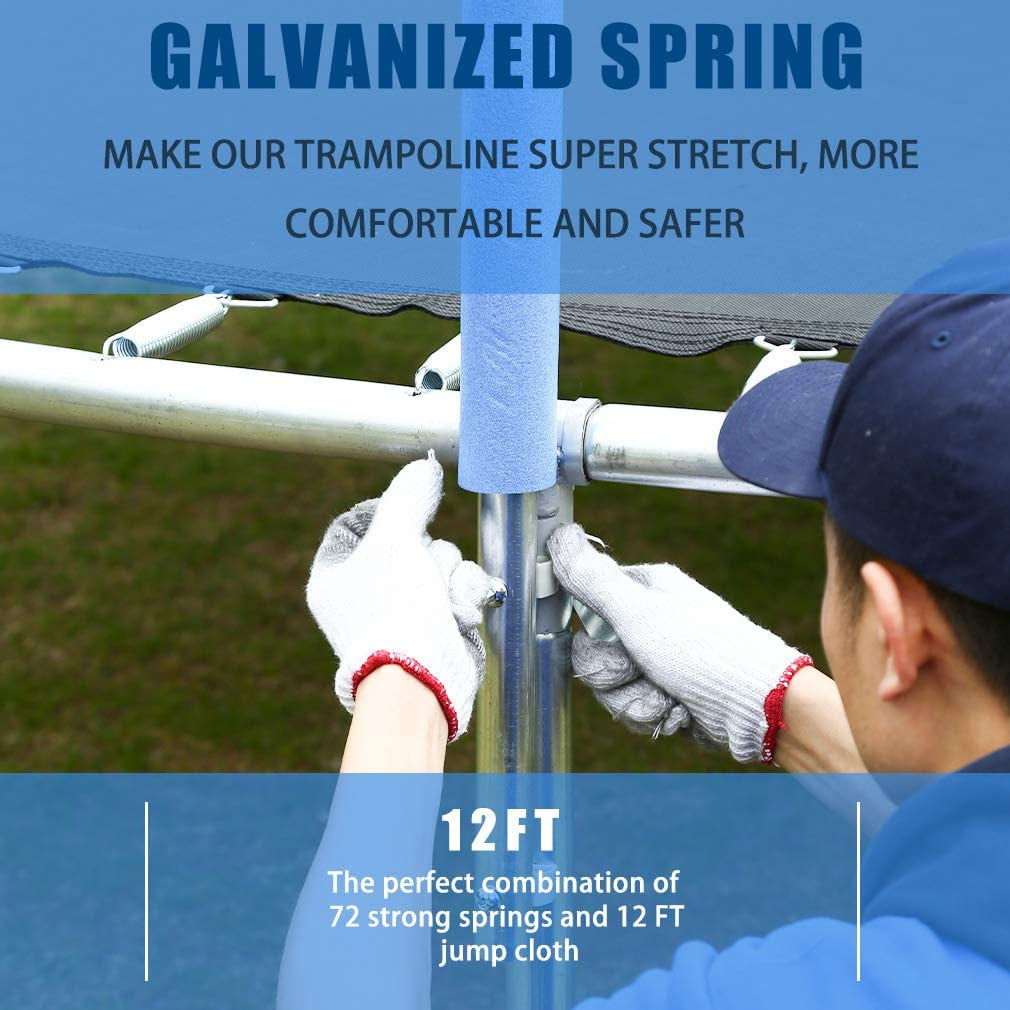 FDW 12 ft Trampoline Combo Jump Safety Enclosure Net W/Spring Pad ,Blue