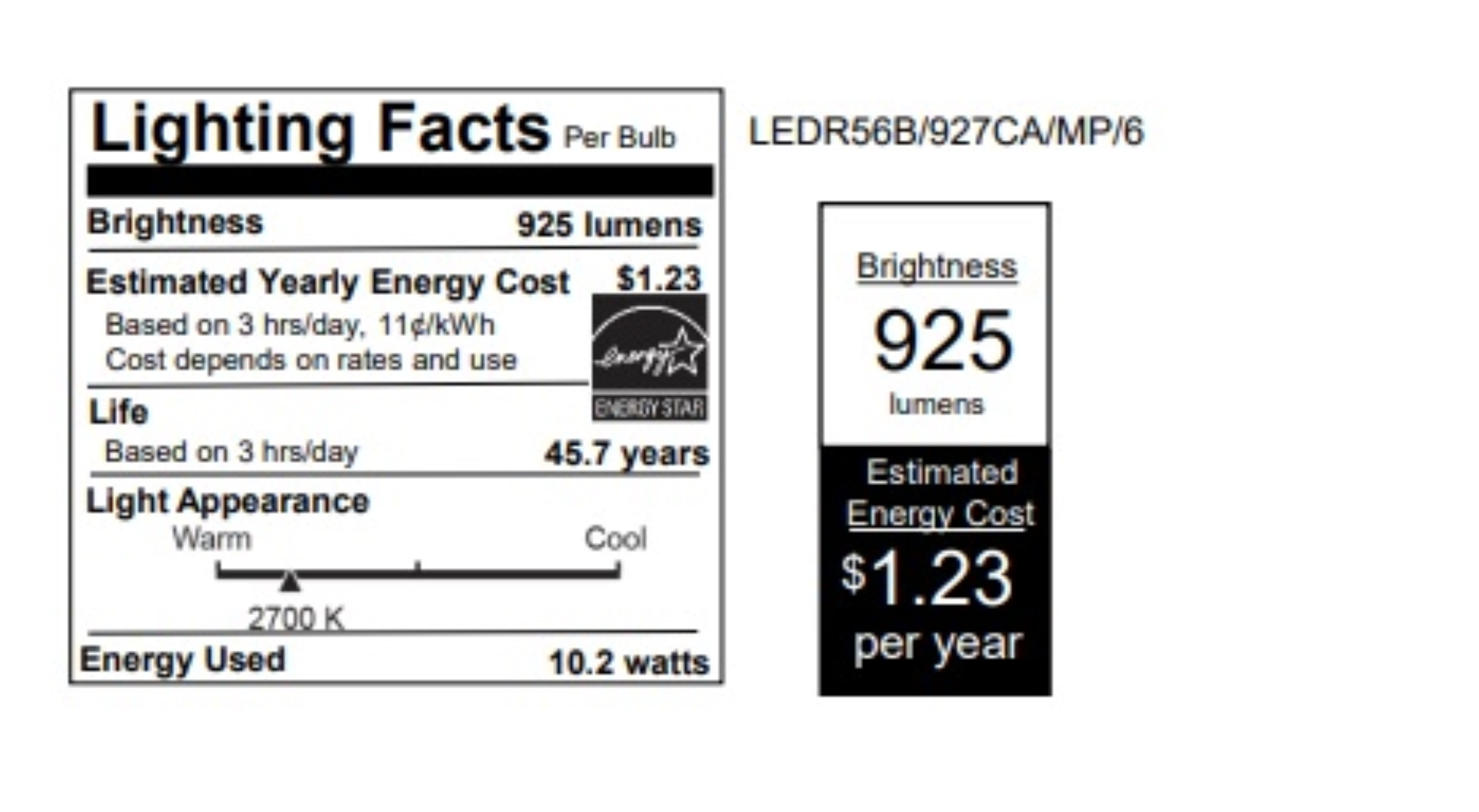 KEY FEATURES – The Feit Electric retrofit kit fits most 5-6 inch recessed cans, is dimmable down to 5%, and produces 90+ color-rendering light equivalent to a 75-watt incandescent SOFT WHITE – The light has a color temperature of 2700K, giving it a slightly yellow warm tint; It is often used in relaxation areas like living rooms and bedrooms; It is perfect for any space you want to feel cozy and inviting ENHANCE LED TECHNOLOGY – Uses up to 87% less energy than an equivalent 75-watt incandescent light; Rated to provide up to 50,000 hours of life; Energy Star certified and CEC Title 20 compliant UL CERTIFIED AND ENERGY STAR APPROVED – Feit electric upholds the highest standards for all our products with optimal performance and safety; With 40+ years of experience in lighting, we are the leader in lighting innovations Specifications Brightness: 925 Lumens Estimated yearly energy cost: $1.23 (based on 3 hours/day, 11/kWh, prices depend on rates and use) Life: 45.7 years (based on 3 hours/day) Light appearance: 2,700K (soft white) Energy used: 10.2-Watt (equivalent to a 75-Watt standard incandescent light bulb) It uses up to 83% less energy compared to a standard incandescent light bulb Lumens per Watt: 90.69 Luminance: 73.58 cd/m2 Input line voltage: 120-Volt Mercury-free Instant on to full brightness Full-range dimming with even light distribution No ultraviolet light, safe for artwork Fits most 5-6 in. recessed cans Easy installation, standard (E26) base adapter included ENERGY STAR certified for energy conservation and savings UL listed for safety and quality California Energy Commission (CEC) title 20 and title 24 compliant Pack of 6-retrofit kits