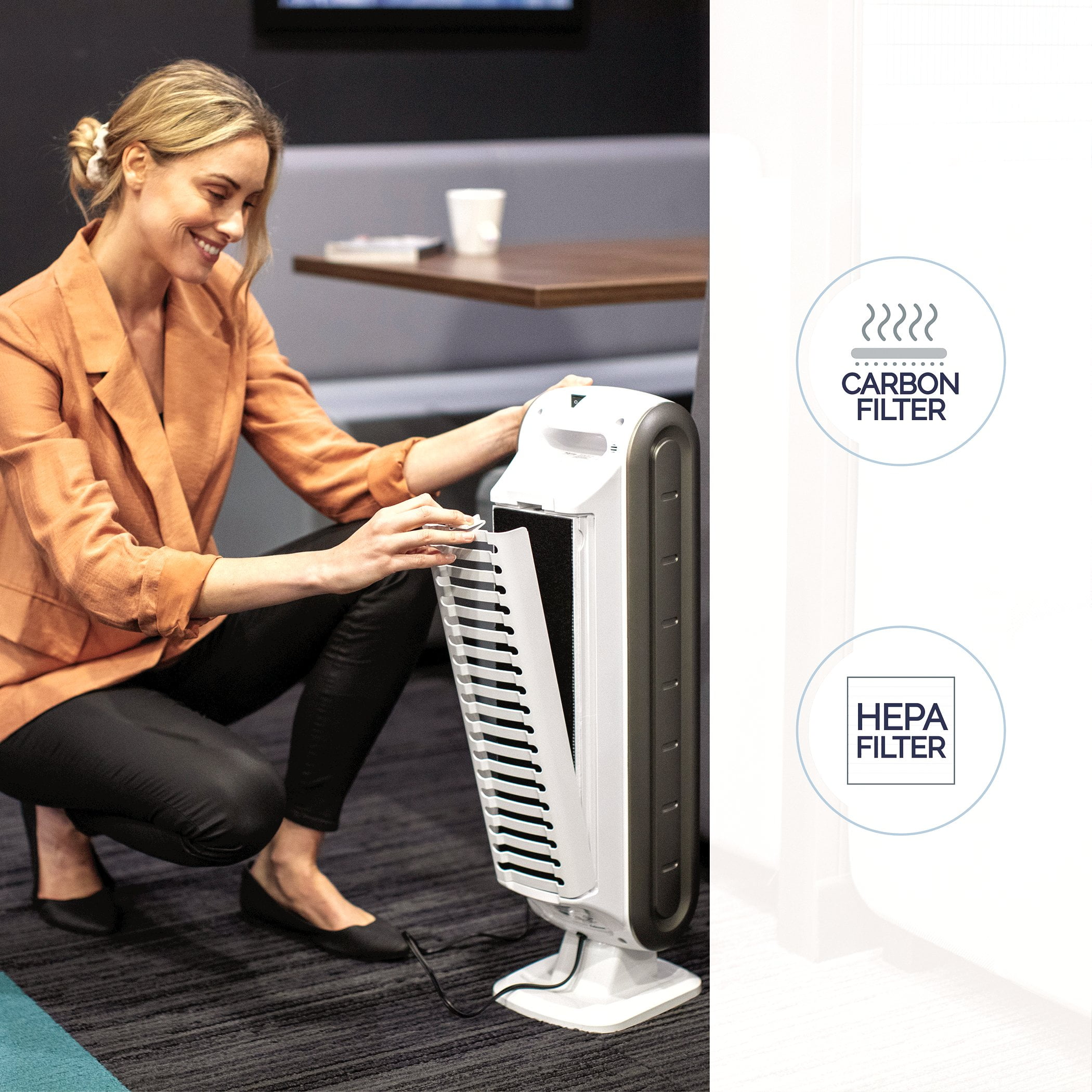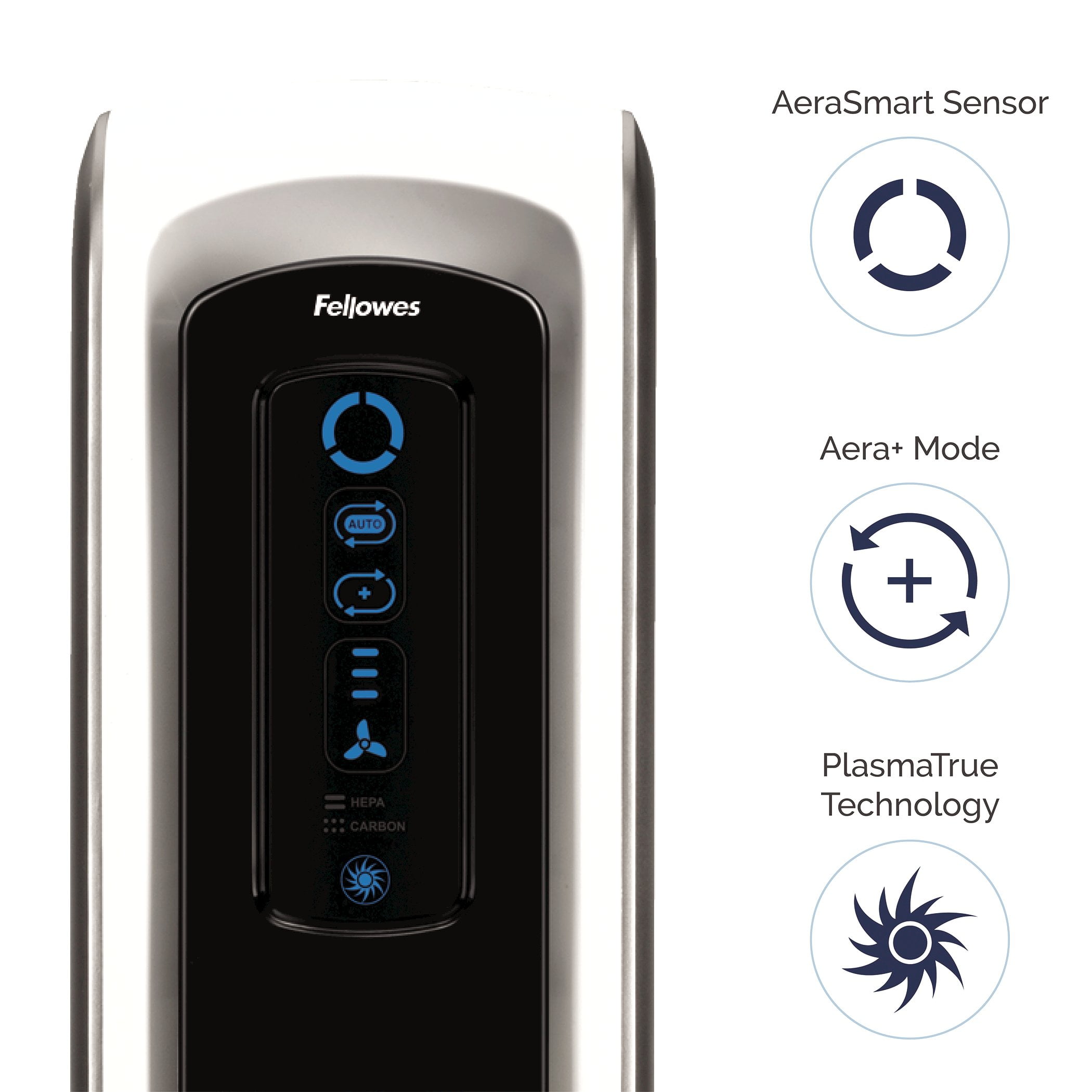 4-stage hospital-type filtration: effectively purifies air in small rooms 100 – 200 square feet AeraSmart™ sensor: monitors the air quality and automatically adjusts the fan speed to keep your air purified True HEPA filter with AeraSafe™ antimicrobial treatment: safely removes 99.97% of viruses, germs, allergens, mold and dust Carbon filter: removes odors and captures large airborne particulates PlasmaTrue™ Technology: optional setting that utilizes ionization to help safely remove airborne pollutants Aera+™ mode: increases air change by 35% for allergy and cold/flu seasons Ultra-quiet operation Filter indicator: light alerts when to change filters