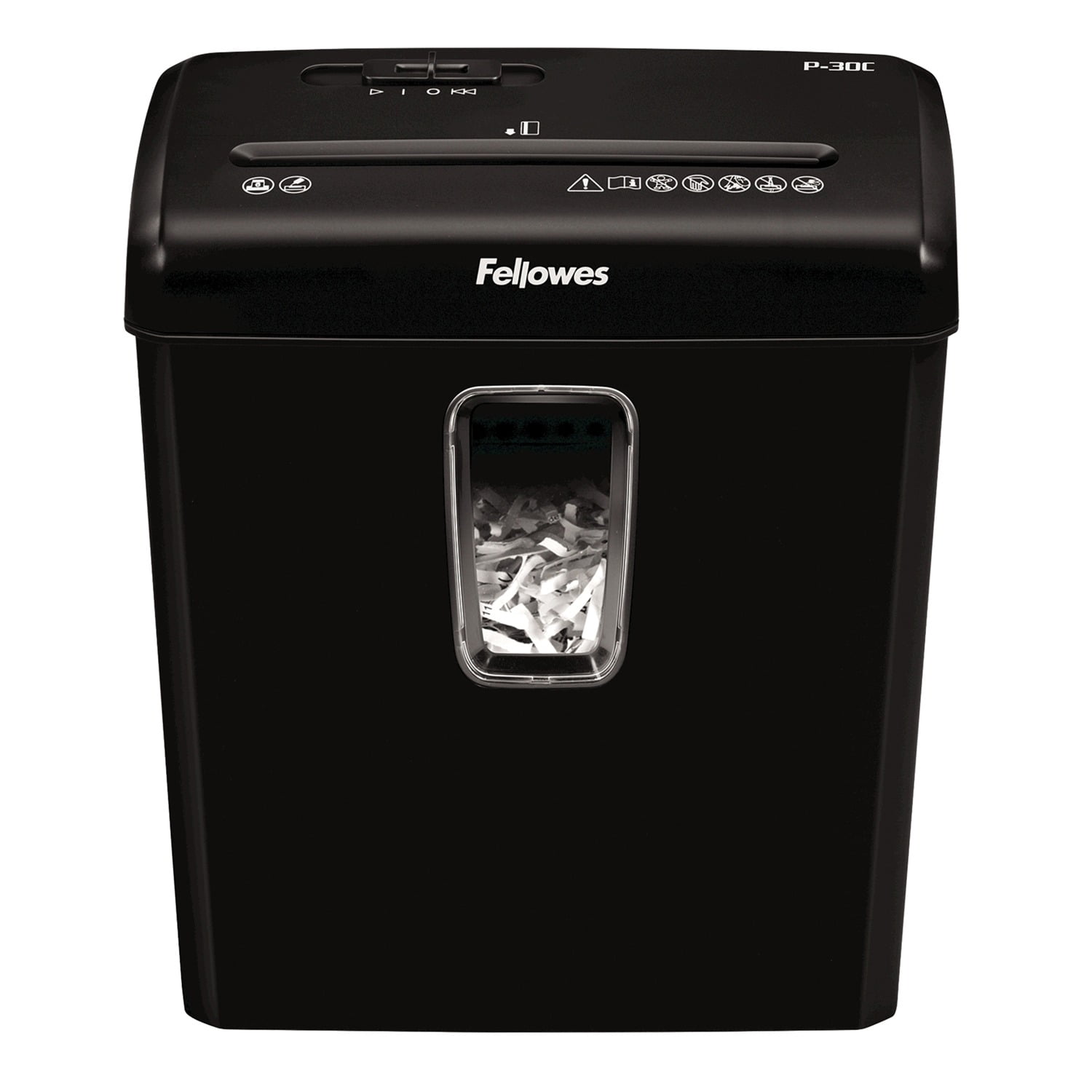 Fellowes Powershred P30-C 6 sheet Cross-Cut Deskside Shredder for Home Office – Cross Cut – 10 Per Pass – for shredding Paper, Staples, Credit Card, Paper Clip – 0.156″ x 0.500″ Shred Size – P-4 – 10 ft/min – 8.62″ Throat – 3 Minute Run Time – 40 Minute Cool Down Time – 4 gal Wastebin Capacity – Black
