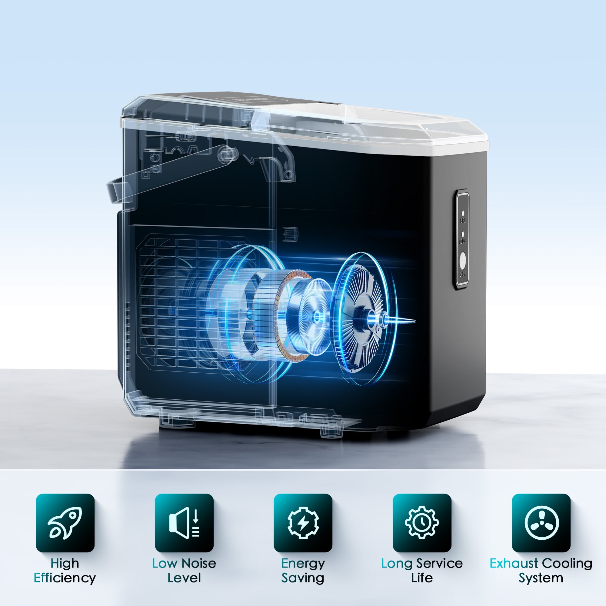 Fenbeli 26lbs/24H Countertop Ice Maker Machine with Handle, Portable Ice Maker Machine with Auto-Cleaning, Black