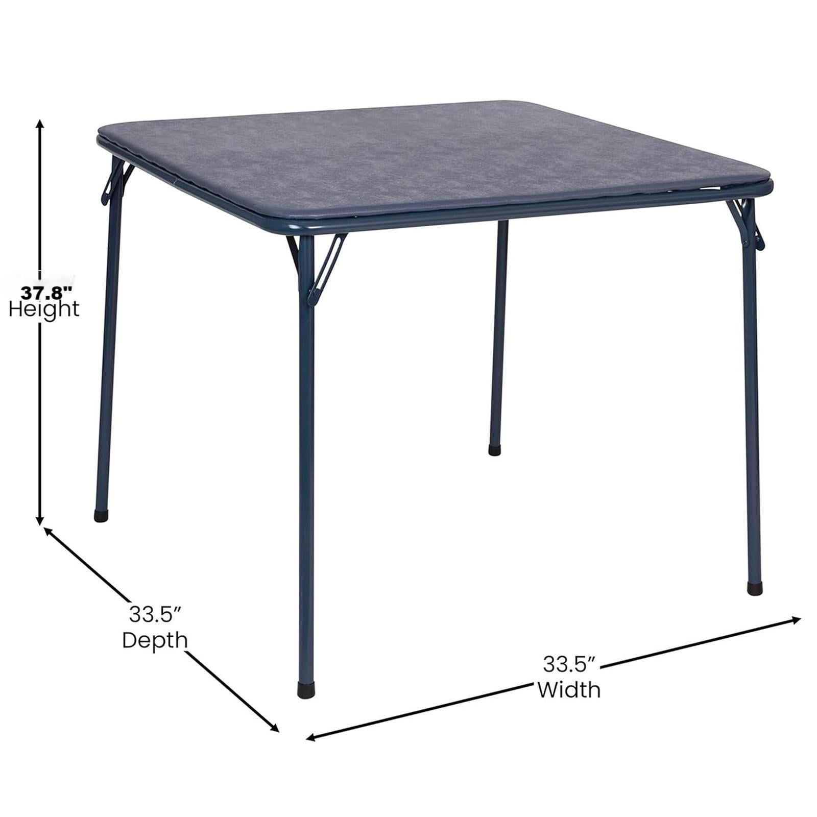 Black Fenbeli card table set has easy-to-clean vinyl upholstered chair seats with comfortable foam pad Low-maintenance and long-lasting powder-coat frame finish Table Dimensions: 34″L x 34″W x 37.8″H Chair Dimensions: 17.3″L x 18.5″W x 31.5″H
