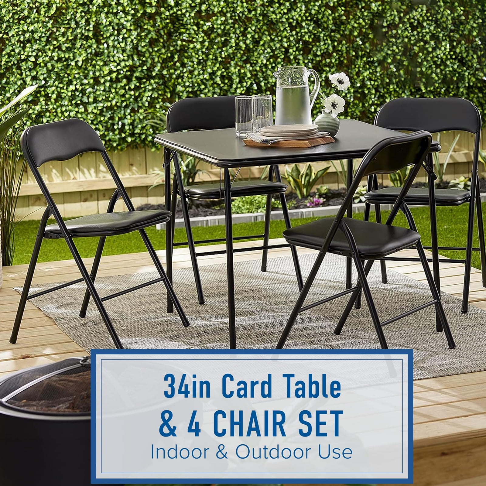 Fenbeli 5-Piece Folding Dining Set with Card Table and 4 Vinyl Padded Chairs for Home, Black