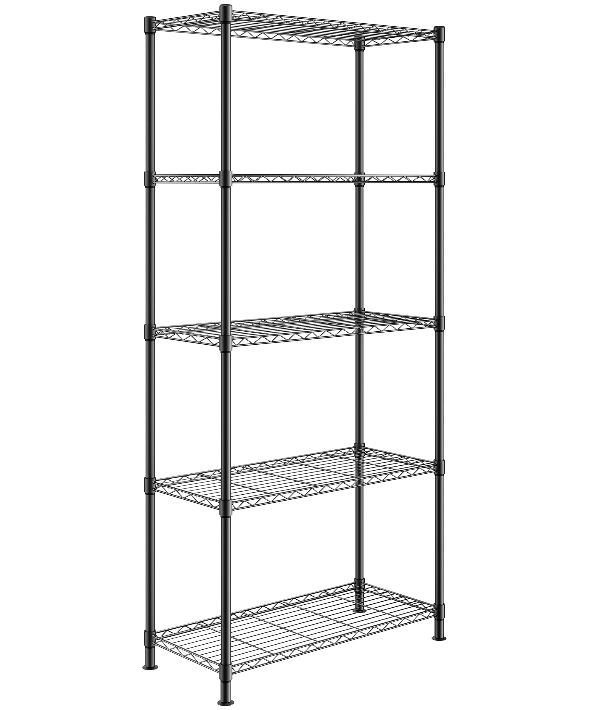 Fenbeli 5-Tier Adjustable Wire Shelving Storage Rack, Heavy-Duty Metal Organizer, Black