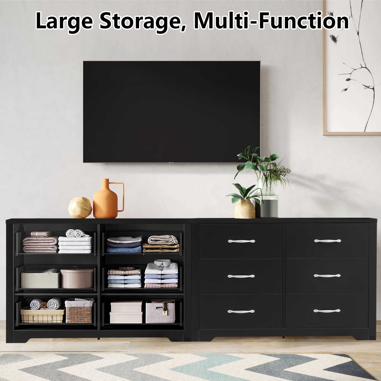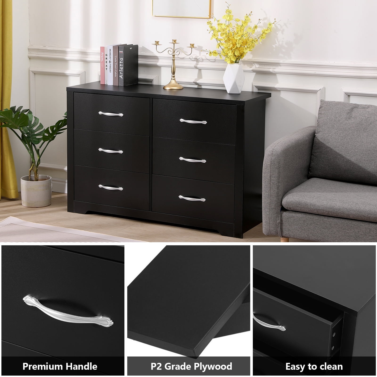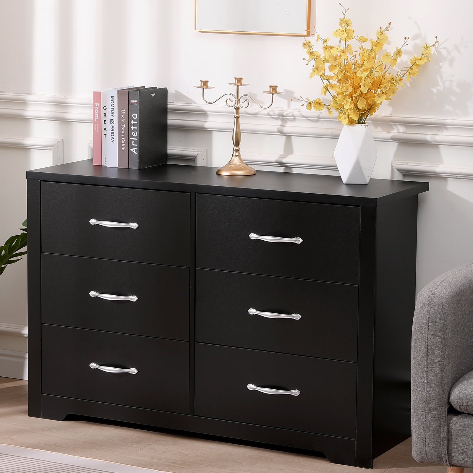 Fenbeli 6 Drawer Dresser, Black Finish