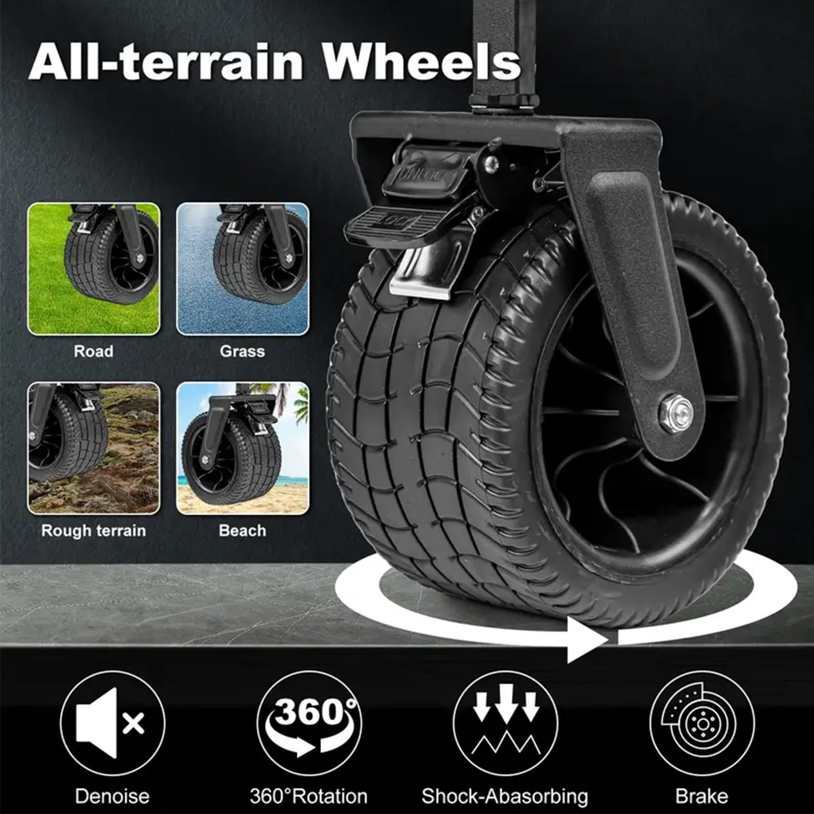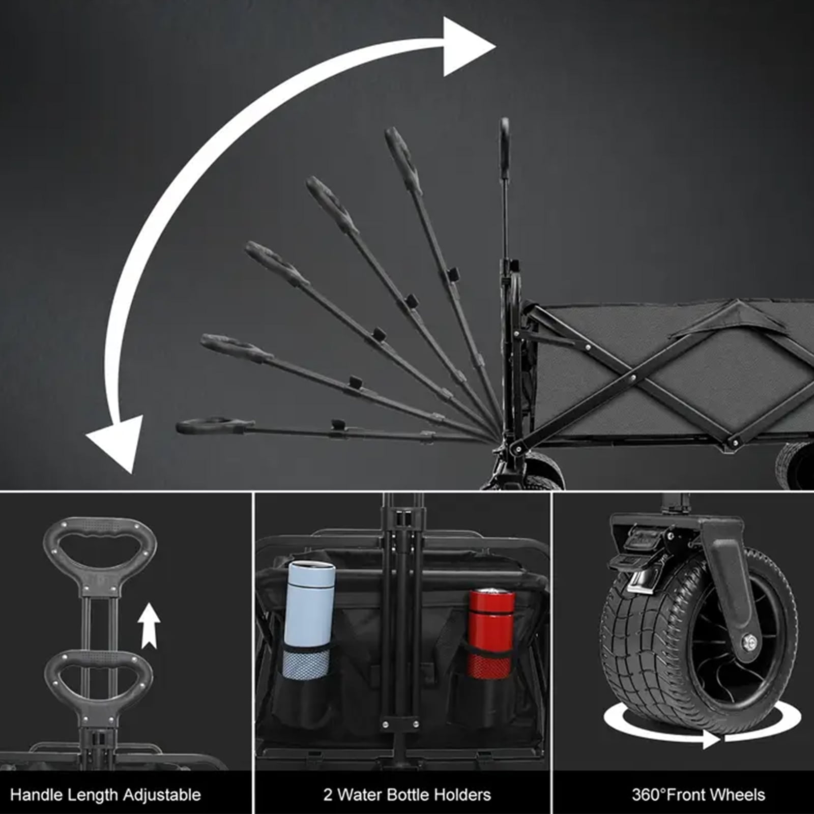 Fenbeli Large Collapsible Folding Wagon with Oversized Tank Wheels for Sports, Shopping, Camping Kids, Black