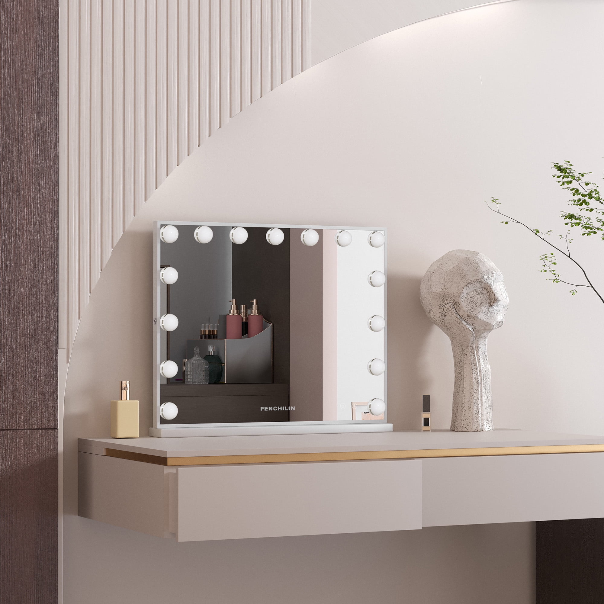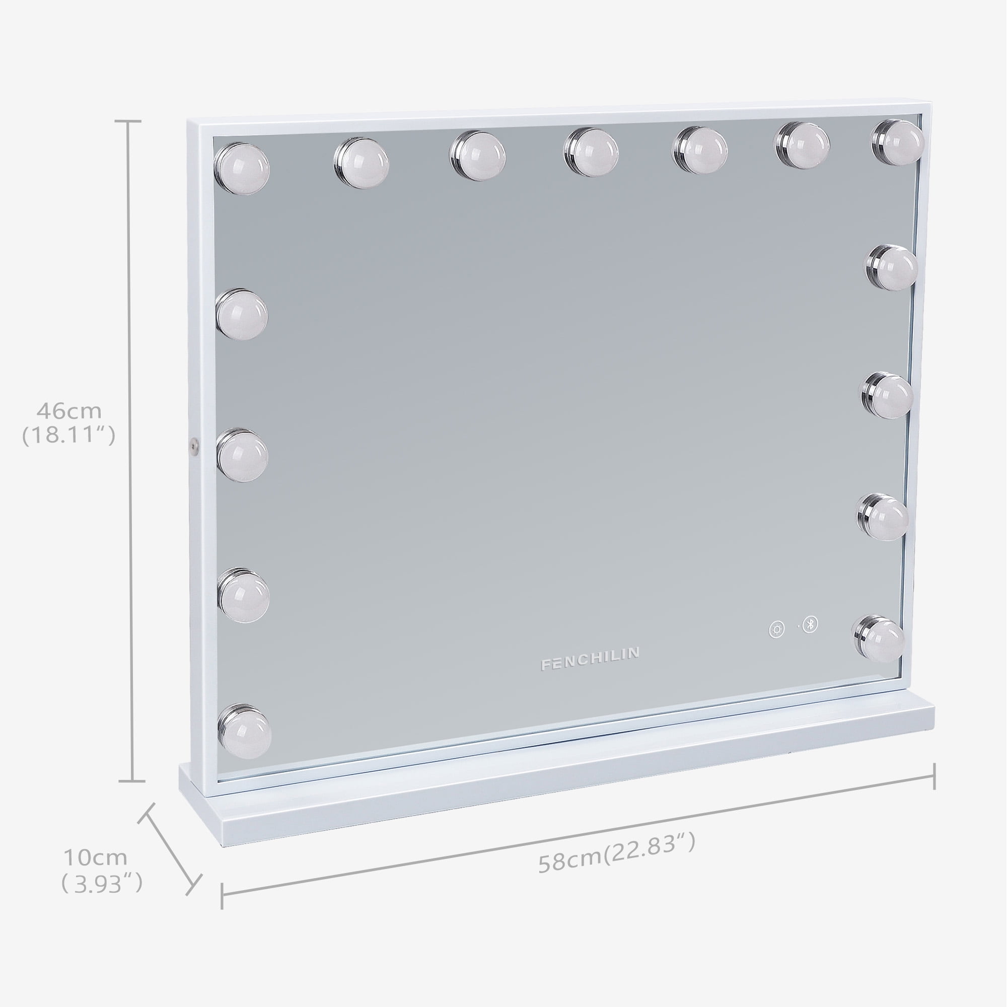 Fenchilin We are committed to a series of Vanity Mirror, Hollywood Mirror and Makeup Mirror. With delight and pride, we highly recommend this white Hollywood Vanity Mirror to you. First, this Vanity Mirror is exactly a Hollywood Mirror that enables you to have a great experience of how superstars do makeup backstage, making it one of the best gifts for makeup lovers on Thanksgiving day and Christmas. It can also serve as a decor in your bedroom. Besides, this Vanity Mirror comes with Bluetooth. You can connect your phone to the Lighted Vanity Mirror via Bluetooth and listen to music while doing makeup. There is also a USB port for you to charge your phone or other USB devices. In addition, its base is detachable and there are 2 holes on the back for nails so that you can also place the Vanity Mirror on wall. If you have any questions about this Lighted Makeup Mirror, feel free to contact us. We will respond within 12 hours. Thank you for your support and understanding.