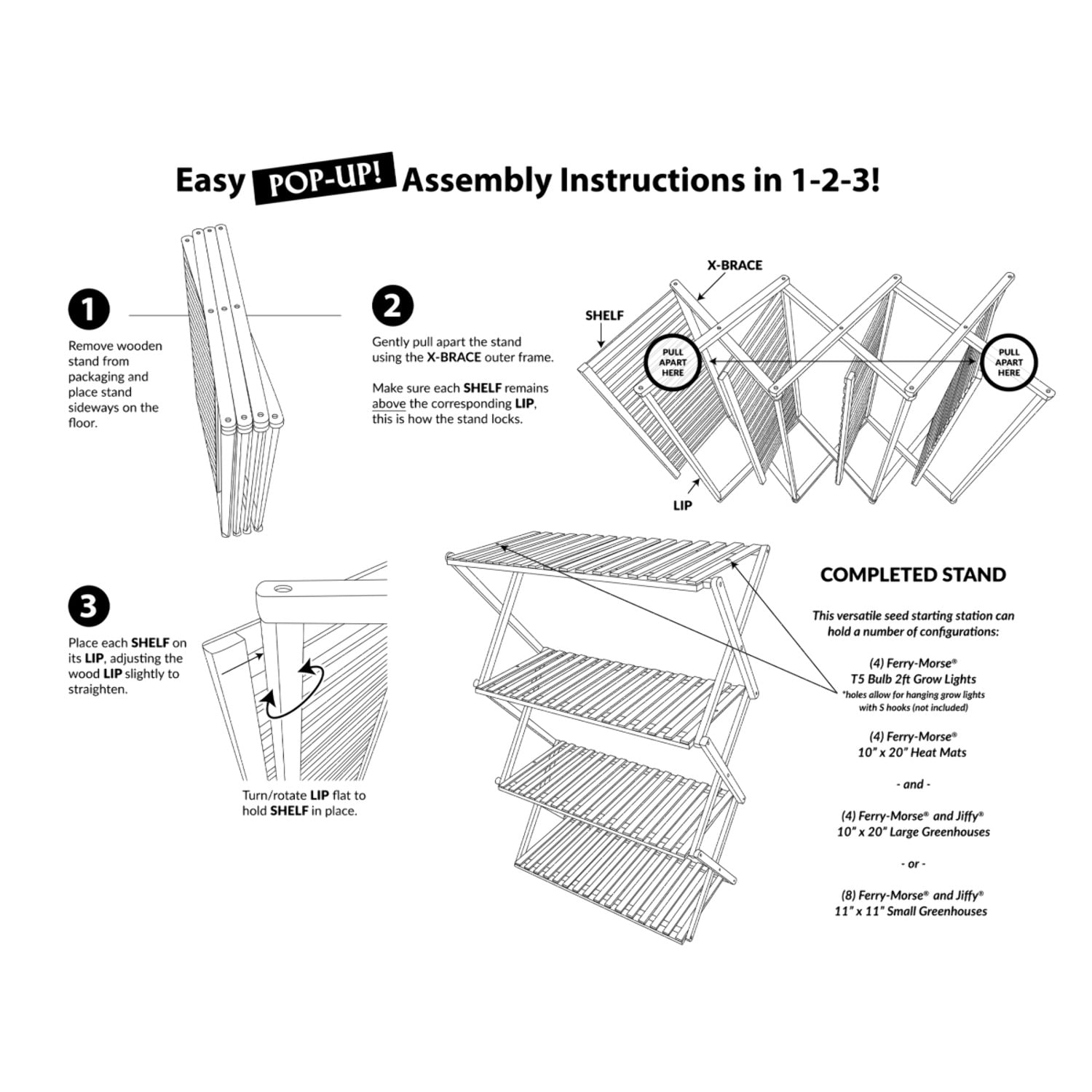 Ferry-Morse’s plant stand is perfect for holding your seed starting setup or indoor plants Ideal seed starting size, holds 4 standard 10” x 20” seedling trays and accommodates grow lights and heat mats Measures 26″ W x 38.5″ H x 12.5″ D when in use and collapses to 26″ W x 3″ H x 12.5″ D for storage Made of renewable bamboo, sustainably sourced and eco-friendly Stores easily, collapses to fit under a bed or in a closet for seasonal use Over 3 feet tall and 12” deep, perfect for small spaces and balconies