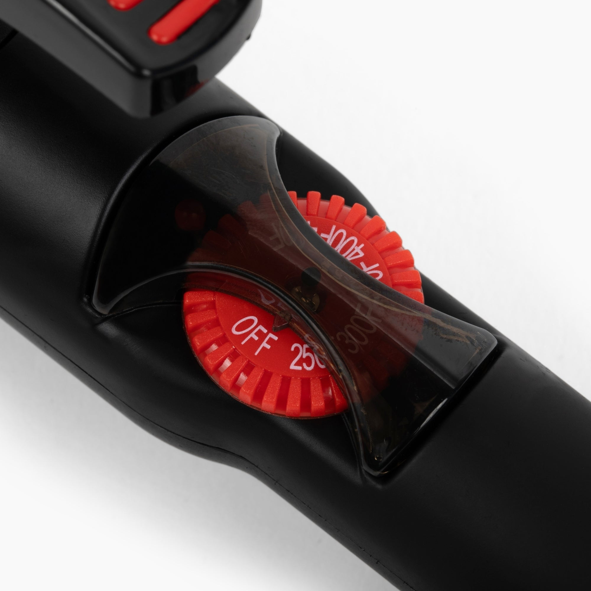 Three layers of baked ceramic infused with tourmaline for even heat distribution Round barrel with spring grip for versatile styling: create glamorous curls to soft waves Adjustable professional temperature from 250°F to 450°F 1 hour auto shut off and universal