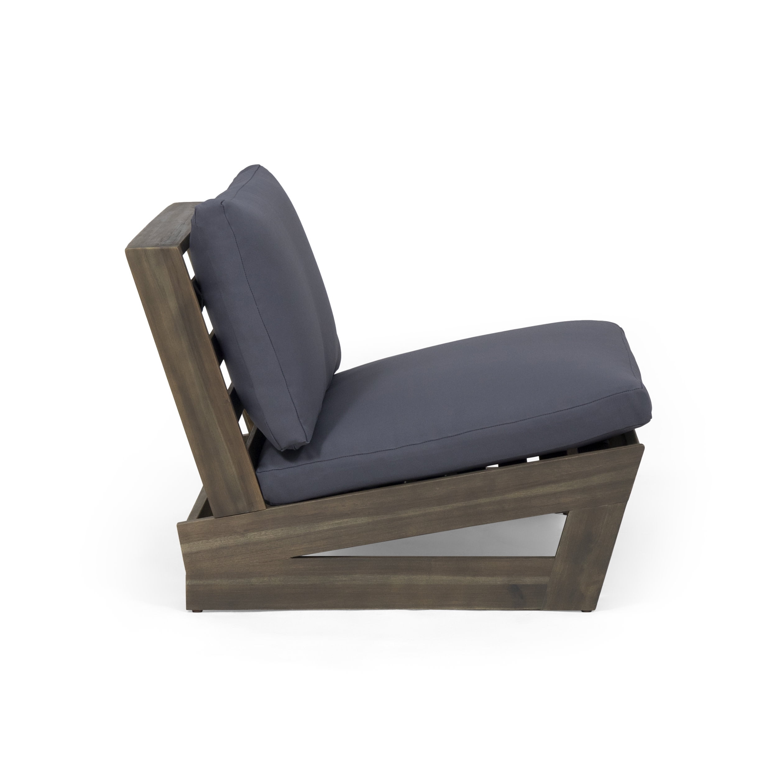 Get yourself outdoor seating that does it all. Boasting clean, simple lines and wide, angled seating, our lounge chair delivers a modern vibe that is both practical and pleasing. Durable acacia wood frames and a rich slat panel design bring earthy, natural charm to any backyard or patio. Topped with plush cushions, this versatile club chair adds comfort and style to your outdoor space.