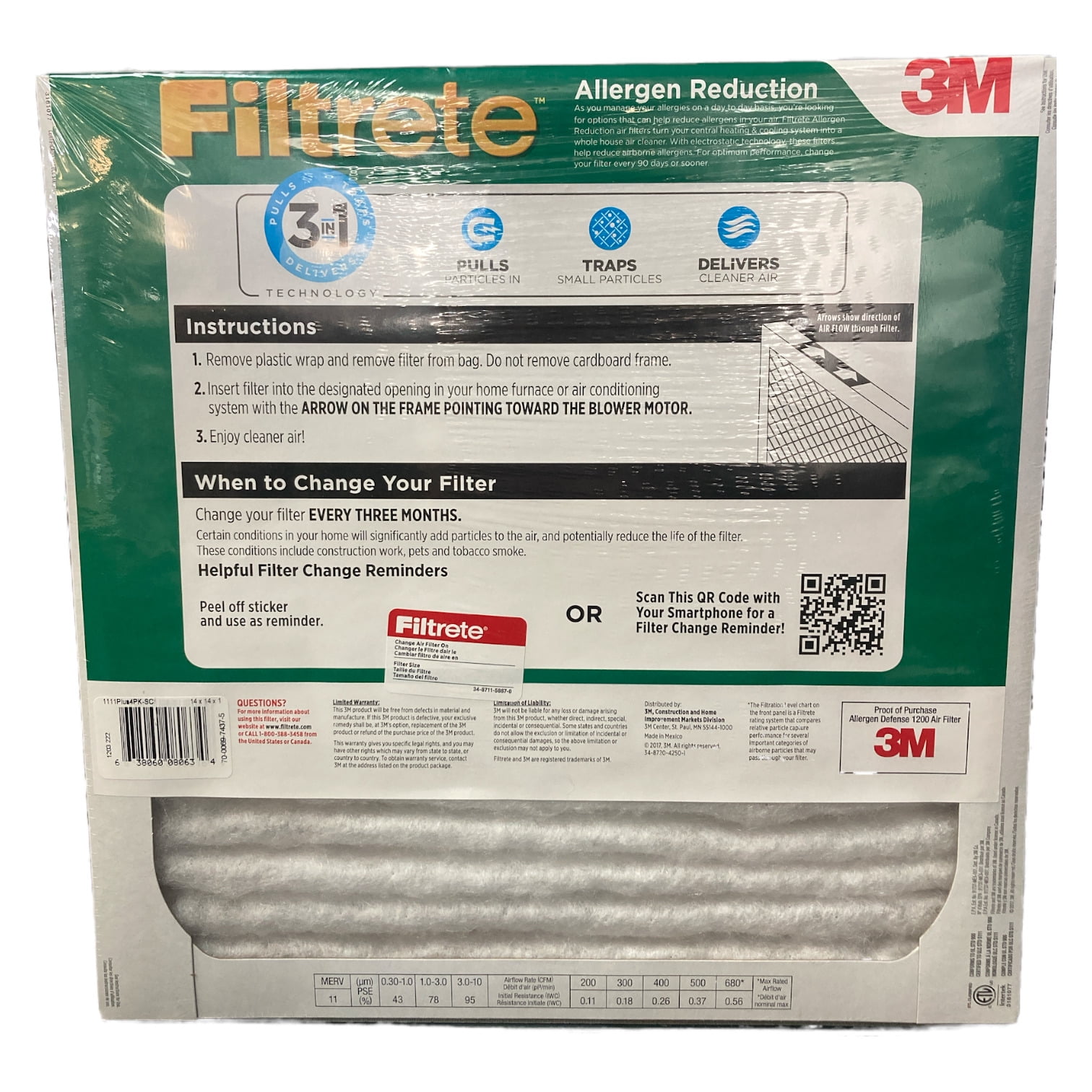 Holds as much dust as 50 dusting wipes Dry dusting wipes in normal use conditions OUTPERFORMS FIBERGLASS, WASHABLE AND NON-ELECTROSTATIC 3-month pleated 1 in. home air filters for your furnace, air conditioner or HVAC system DESIGNED WITH EXCLUSIVE Filtrete Brand 3-in-1 technology from 3M to trap unwanted air particles while letting cleaner air flow through ATTRACTS AND CAPTURES particles such as lint, pollen, dust, pet dander, smoke and smog Filtrete 1200D MPR has a rating of MERV 11 The higher the MPR, the more microparticles–such as pollen, pet dander, smoke, bacteria and viruses–your filter will capture from the air passing through it FIND YOUR SIZE: MPR 1000, MPR 1200 and MPR 1550 available in 4 in., 4 in. slim fit and 5 in. thick air filters
