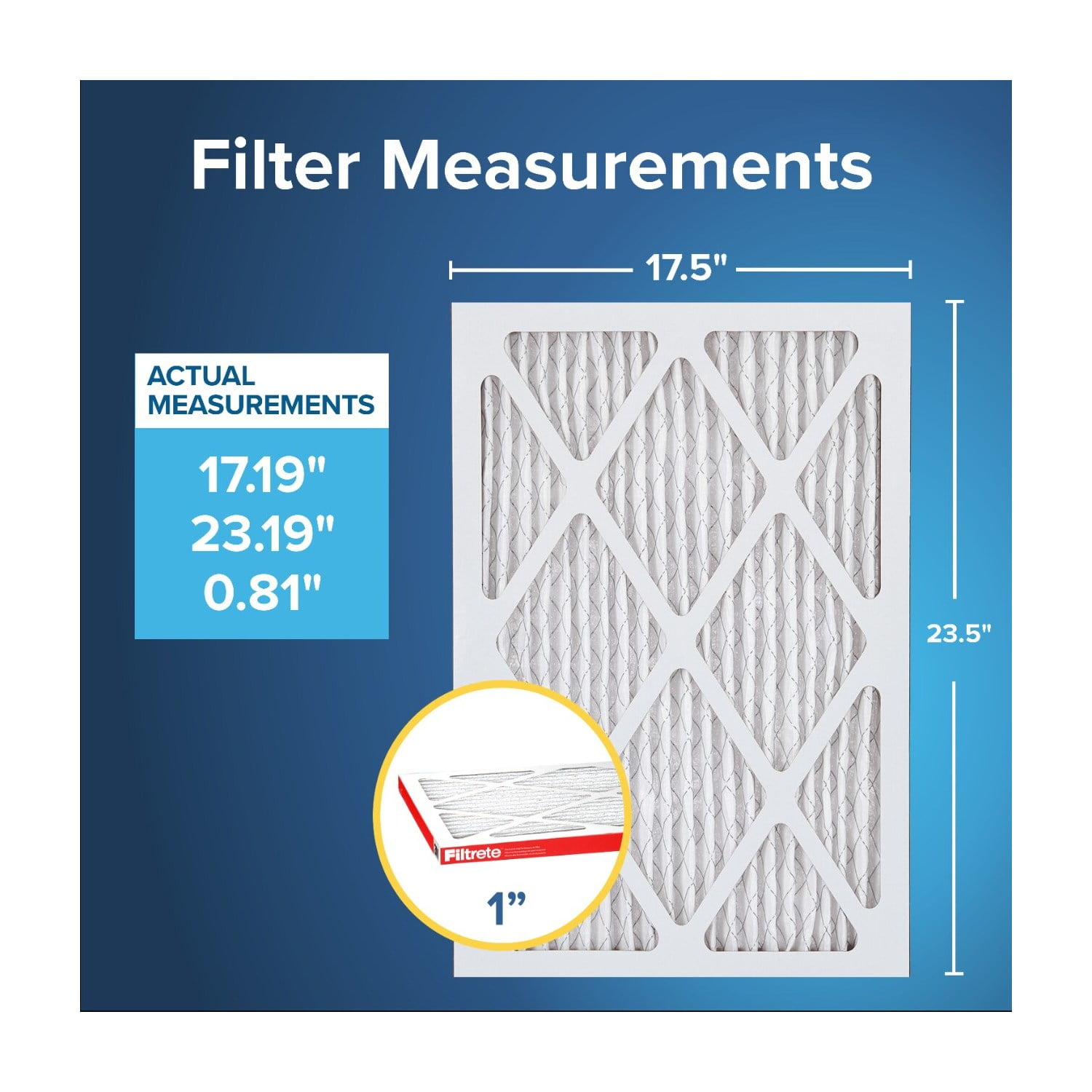 MAKE YOUR HOME YOUR SANCTUARY: 1-pack of 3-month pleated Filtrete 17.5×23.5×1 MERV 11 MPR 1000 AC Furnace Air Filter helps capture unwanted particles from your household air to contribute to a cleaner, fresher home environment EXCLUSIVE TECHNOLOGY: Designed with Filtrete™ 3-in-1 technology to pull in and trap unwanted particles, allowing cleaner air to flow through COUNTLESS MICROPARTICLES: With a 1000 MPR and MERV 11 rating, your Filtrete™ Filter will help capture many microparticles from the air passing through it CERTIFIED: This furnace filter is CERTIFIED asthma and allergy-friendly® (2) and helps capture dust, lint and other allergens in your household air CHANGE YOUR FILTER OFTEN: For optimal performance, make sure to change your filter at least once every 90 days VERSATILE USES: Works for changing the air filters in your furnace, air conditioner/heating system or HVAC system SMART APP: Use the Filtrete™ Smart App (iOS or Android) to set 30-, 60- or 90-day reminders to change your air filter MOST TRUSTED: Filtrete™ Brand is North America’s most trusted brand of HVAC Filters, based on 2024 Sago US Brand Health Survey of Residential HVAC Air Filters