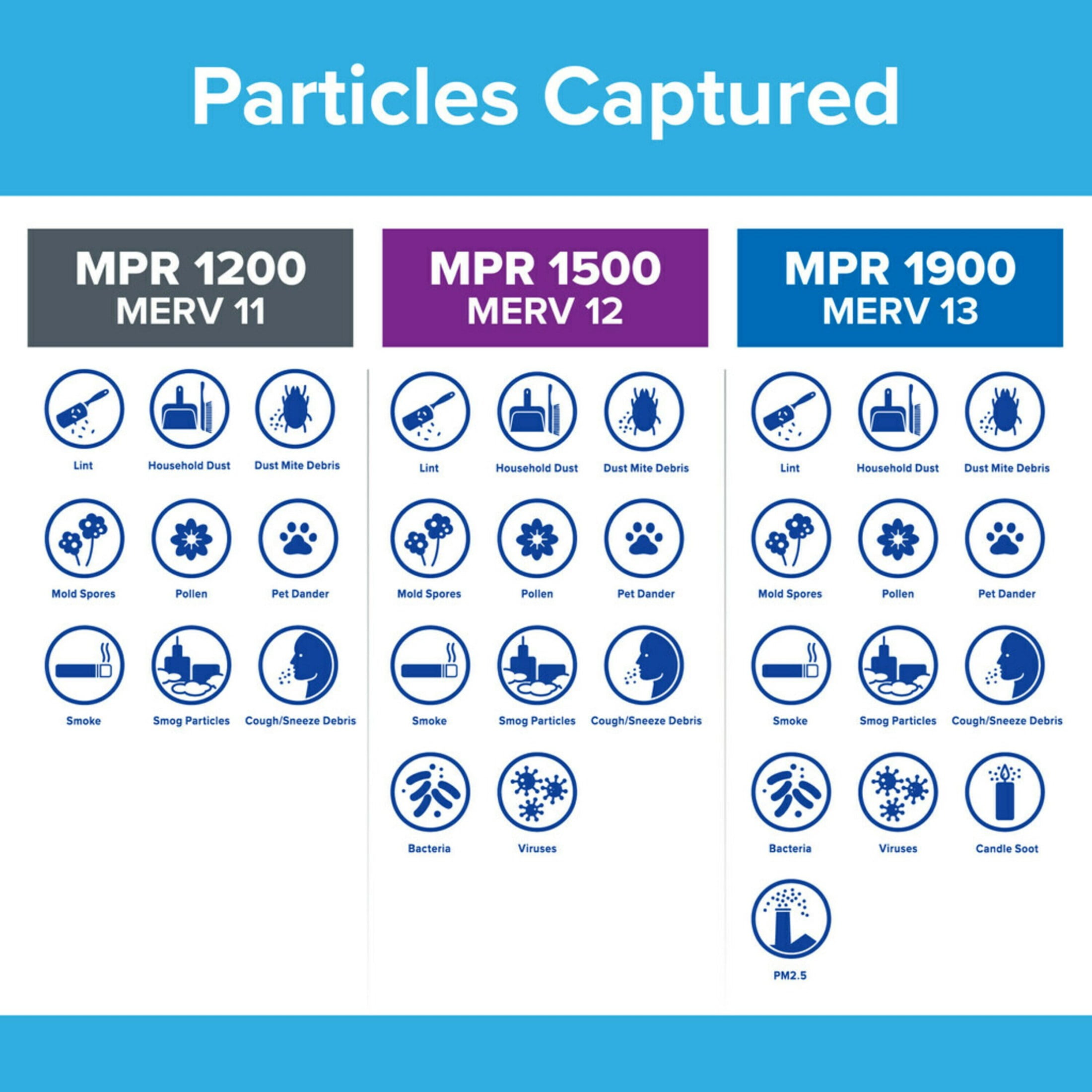 Not sure which Filtrete Filter to buy? Click here to view our help guide. Filtrete 20x24x1 MPR 1200 Air Filter, made by 3M, helps minimize strong odors and capture unwanted particles and allergens from your household air to contribute to a cleaner, fresher home environment. Designed with exclusive Filtrete 3-in-1 technology with a unique active carbon layer that captures odor particles, plus an MPR 1200 and MERV 11 rating, your AC filter will help pull and capture countless microparticles – such as pet dander, smoke, smog, odors, and cough and sneeze debris – while letting cleaner air flow through. Your Filtrete Filter will also capture large particles, including lint, pollen, mold spores and household dust. Use a 3-month pleated 1-inch home HVAC filter in your furnace, air conditioner or HVAC system. For optimal performance of your heating and cooling system or HVAC system, change your furnace filter at least every 90 days. Note: For easy replacement reminders, create a change countdown in the Filtrete Smart App. Simply use the app to scan the barcode on your filter’s packaging, then choose 30, 60 or 90 days for your replacement countdown. When the filter’s life is up, you’ll get a notification to change your filter. The No. 1 Recommended HVAC Air Filter Brand (1), Filtrete’s Home Air Filters provide the breakthrough technology needed to change how we clean our air, by filtering out particles both large and invisible, to create a cleaner, healthier home for ourselves and our families. Residential use only. (1) Based on the 2022 Ipsos US Brand Health Study of Residential HVAC Air Filters. Filtrete 20x24x1 MPR 1200 Air Filter, made by 3M, helps minimize strong odors and capture unwanted particles and allergens from your household air to contribute to a cleaner, fresher home environment. Designed with exclusive Filtrete 3-in-1 technology with a unique active carbon layer that captures odor particles, plus an MPR 1200 and MERV 11 rating, your AC filter will help pull and capture countless microparticles – such as pet dander, smoke, smog, odors, and cough and sneeze debris – while letting cleaner air flow through. Your Filtrete Filter will also capture large particles, including lint, pollen, mold spores and household dust. Use a 3-month pleated 1-inch home HVAC filter in your furnace, air conditioner or HVAC system. Three come in a pack, so keep one filter as backup, or use them in multiple areas. For optimal performance of your heating and cooling system or HVAC system, change your furnace filter at least every 90 days. (1) Based on the 2022 Ipsos US Brand Health Study of Residential HVAC Air Filters.