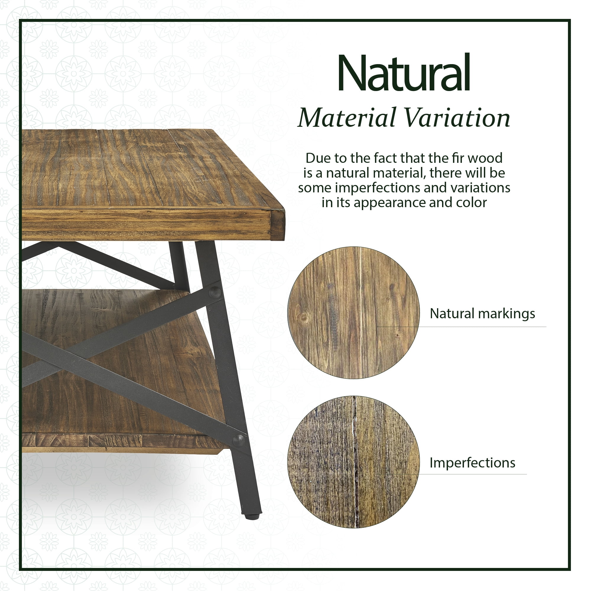 - Solid fir wood planks with natural knots and grains add rustic charm