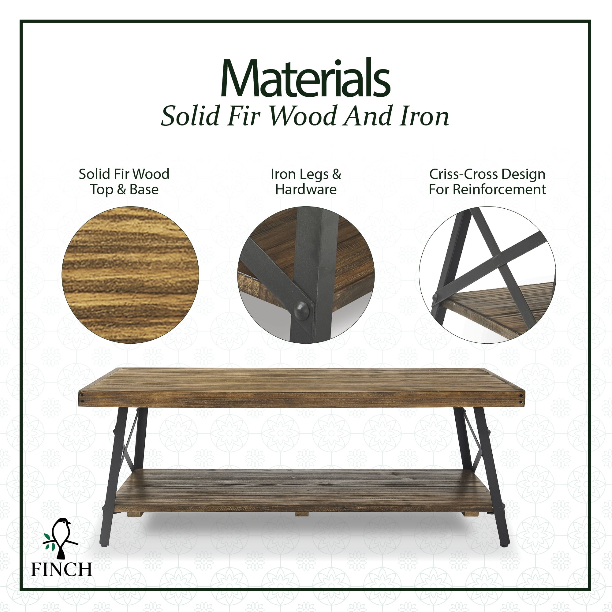Anchor your space in enduring farmhouse style with this solid wood and metal coffee table. Two spacious tiers offer plenty of room to display decor or serve up trays of treats. Walnut stained, solid fir wood is supported by a sturdy black metal frame for a look that works well in industrial lofts and modern farmhouses alike.