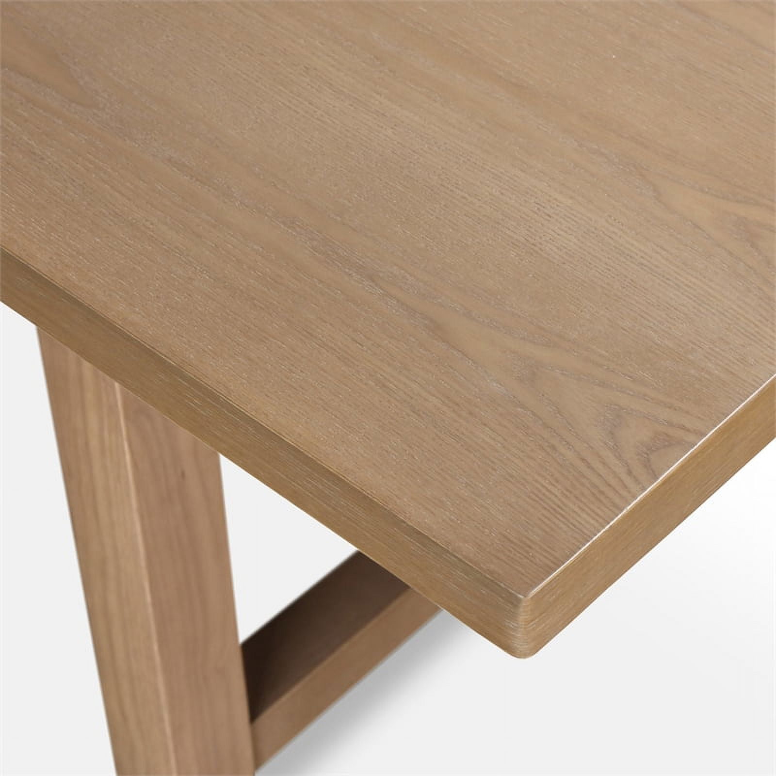 Create a warm, inviting space perfect for any gathering with this timeless wood dining table. This trestle dining table expertly melds elements of modern design with classic farmhouse style. The wood table boasts a rustic, light wood finish that easily matches with the rest of your decor, serving as the centerpiece for holidays and everyday meals alike. At the same time, a modern trestle table base creates an elegant contrast with the timeless rectangular tabletop to elevate this table beyond your everyday dining room design. This modern farmhouse table shows off classic rustic color that creates visual interest thanks to natural wood grains. You can sit up to six comfortably on dining chairs, or add a long bench to seat more people. No matter the occasion, this table serves as the perfect backdrop to memories that will last a lifetime. Comfortable and classic, this table will take your dining room to the next level. Finch Grant 67″ Farmhouse Dining Table with Trestle Base, Rustic Beige