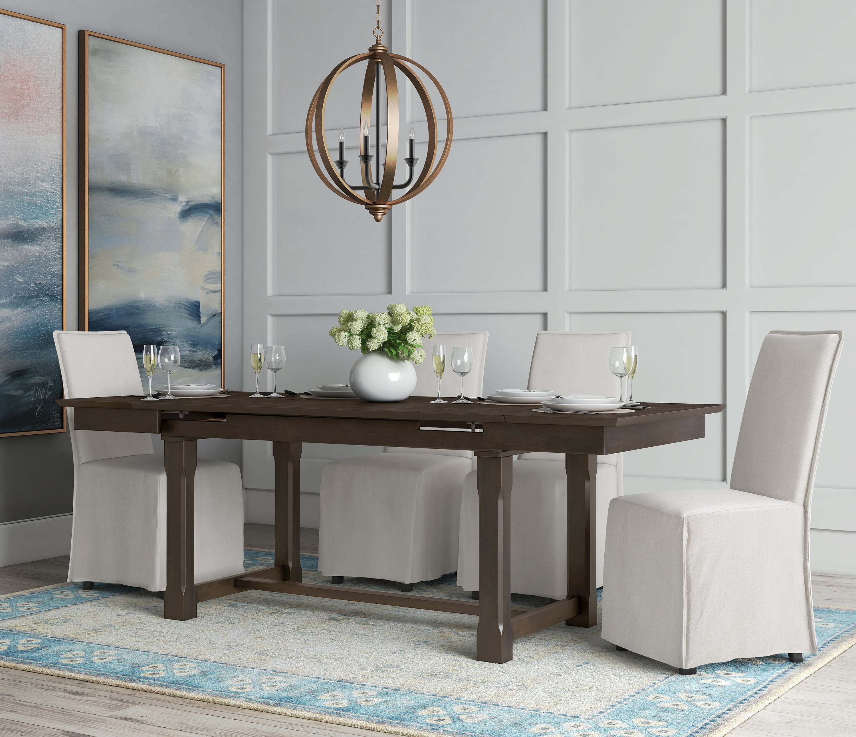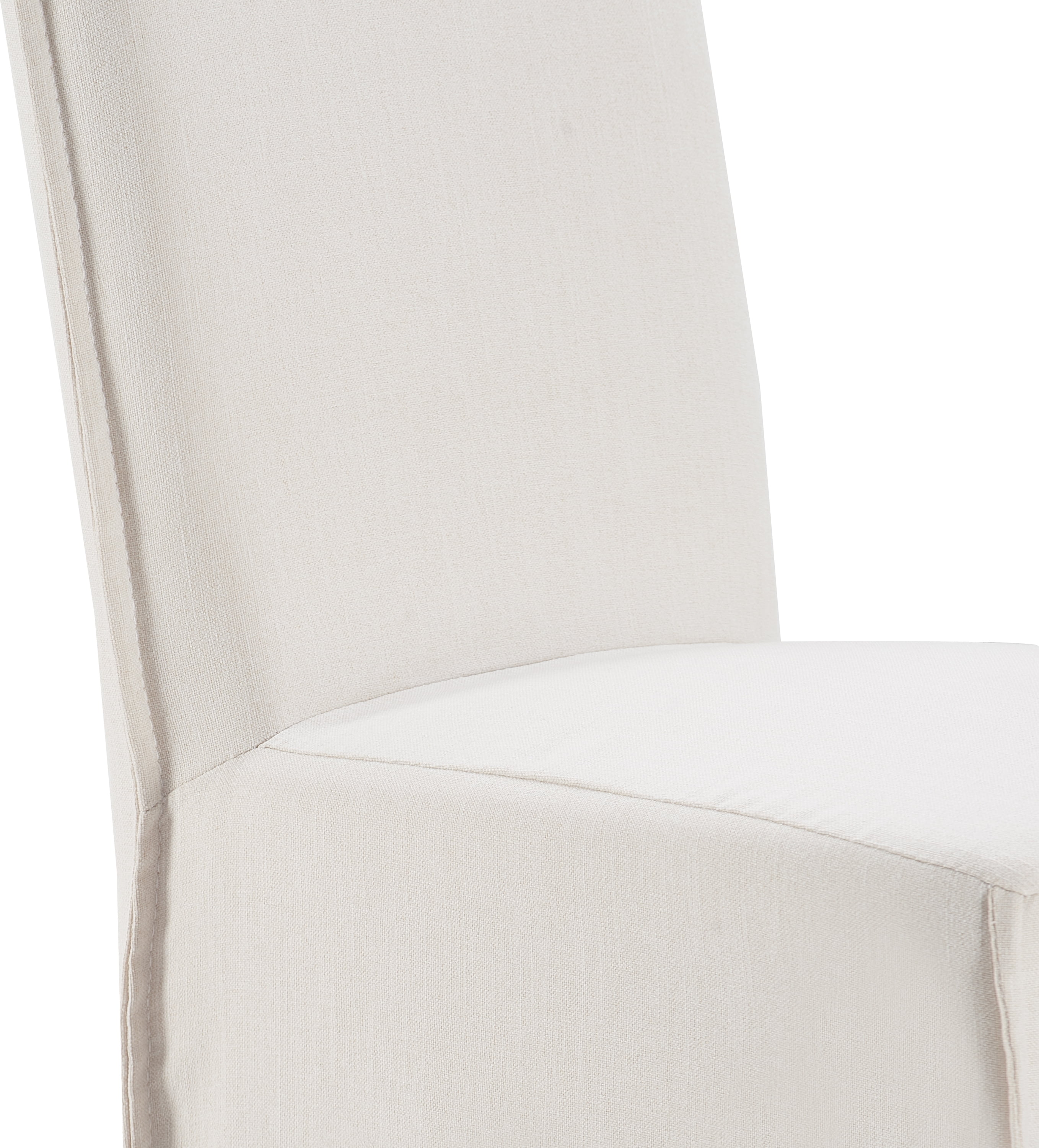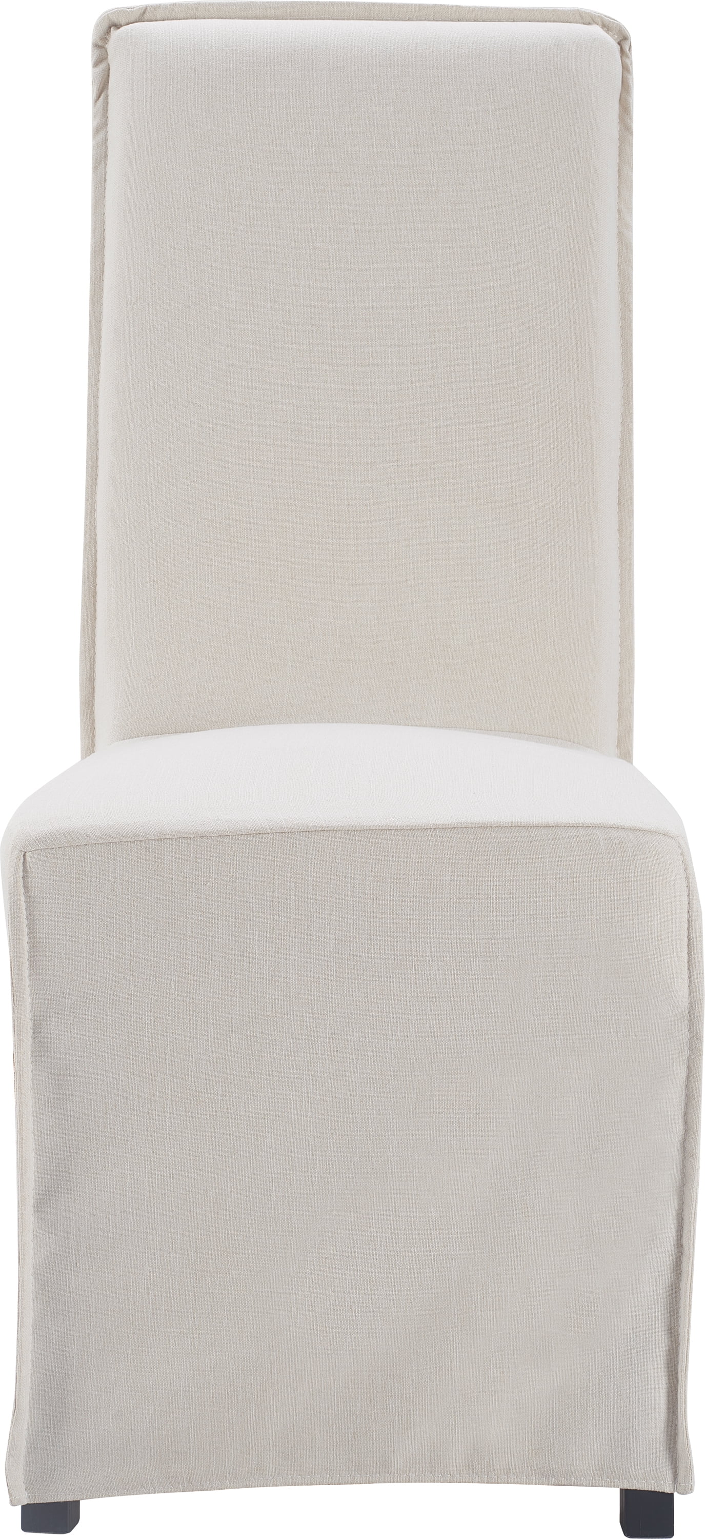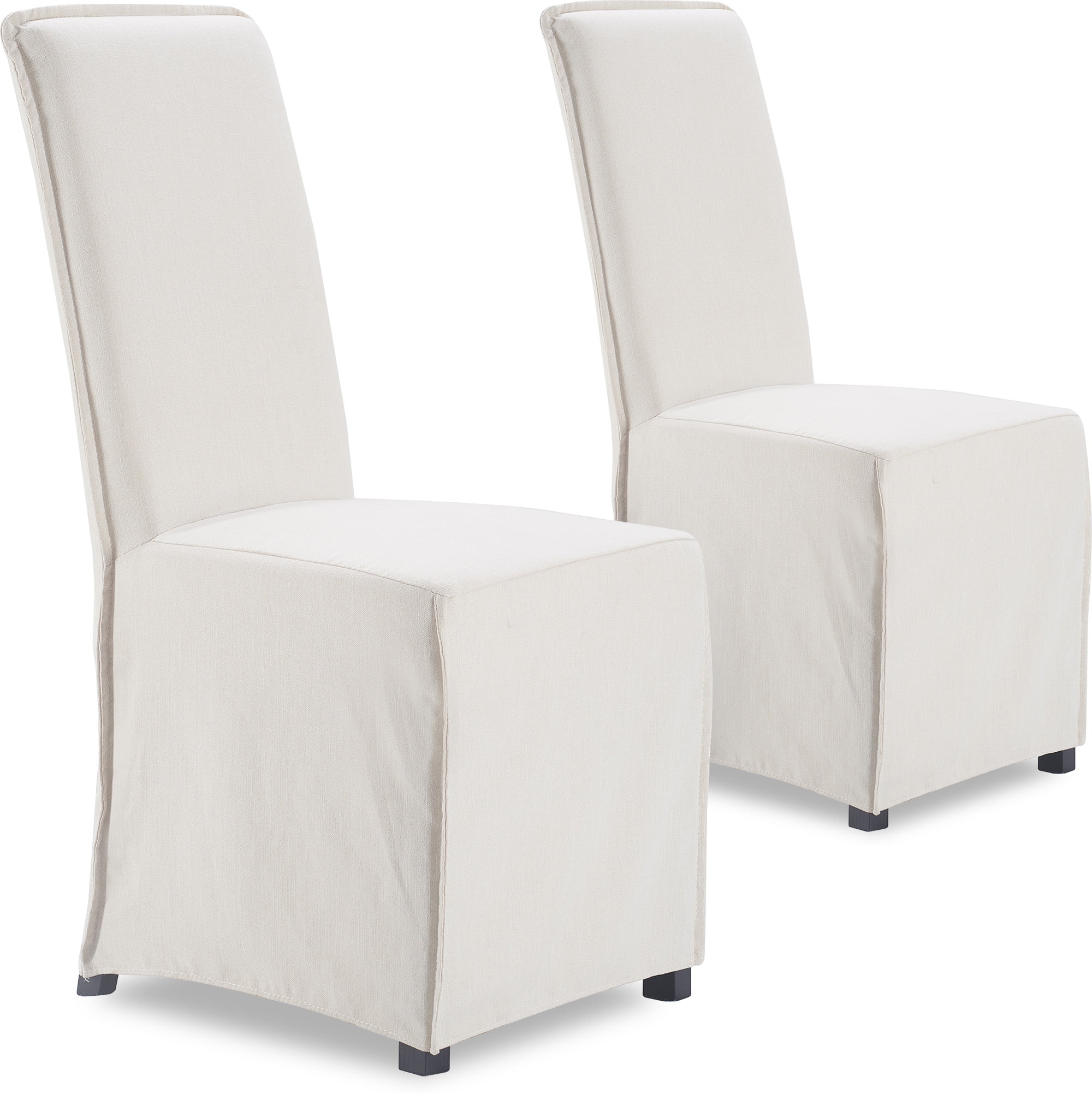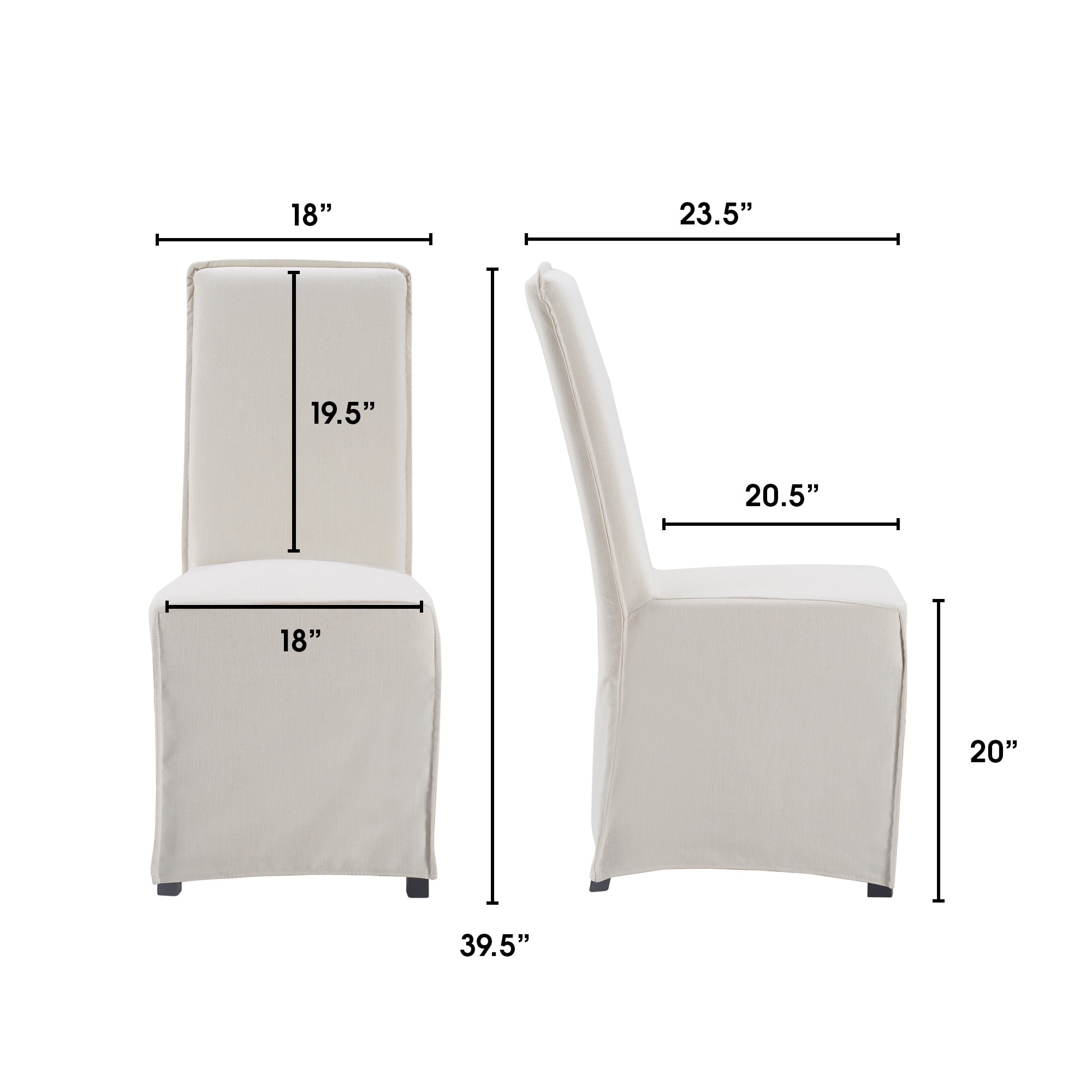Long skirt slipcovers create an elegant look for formal dining or kitchen tables Soft fabric with a linen feel provides a comfortable seating experience Removable slipcovers make cleaning a breeze, keeping your room looking pristine Versatile design fits with various modern and mid-century dining table styles Available in ivory color complementing different table materials and styles Easy to assemble with clear instructions to enjoy a comfy chair in no time. Loading Capacity of 250 lb. Overall Seat Dimensions of 18 x 23.5 x 39.5 Inches Inside Seat Dimensions of 18 in. x 20.5 in. Seat Height of 20 in. Material: Woven Fabric and Wood Colors: Gray, Ivory