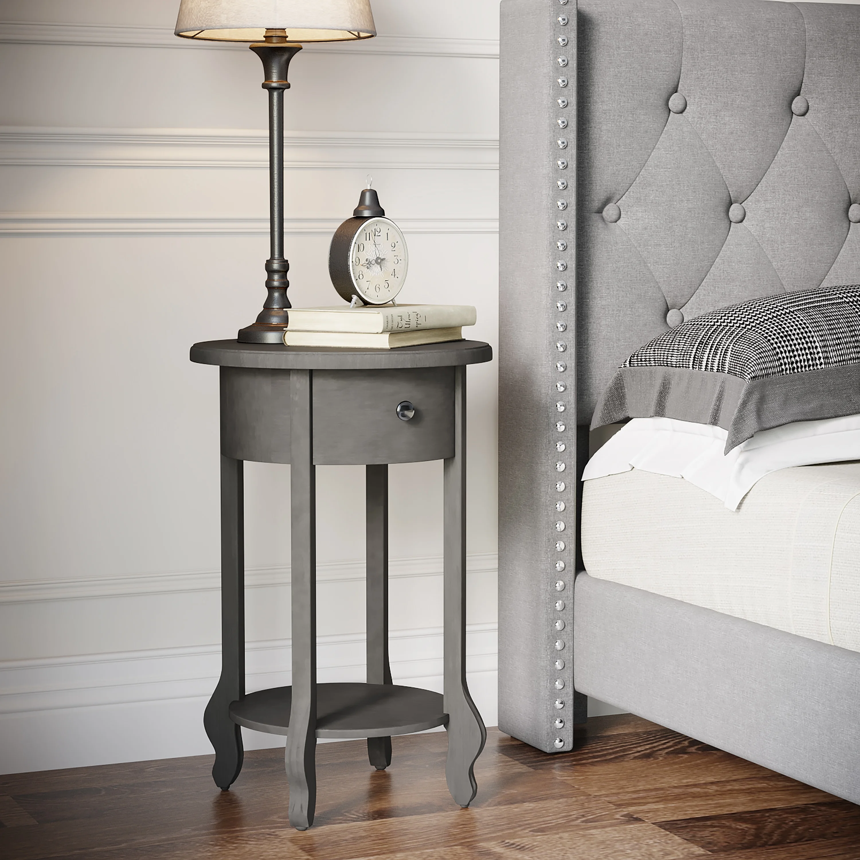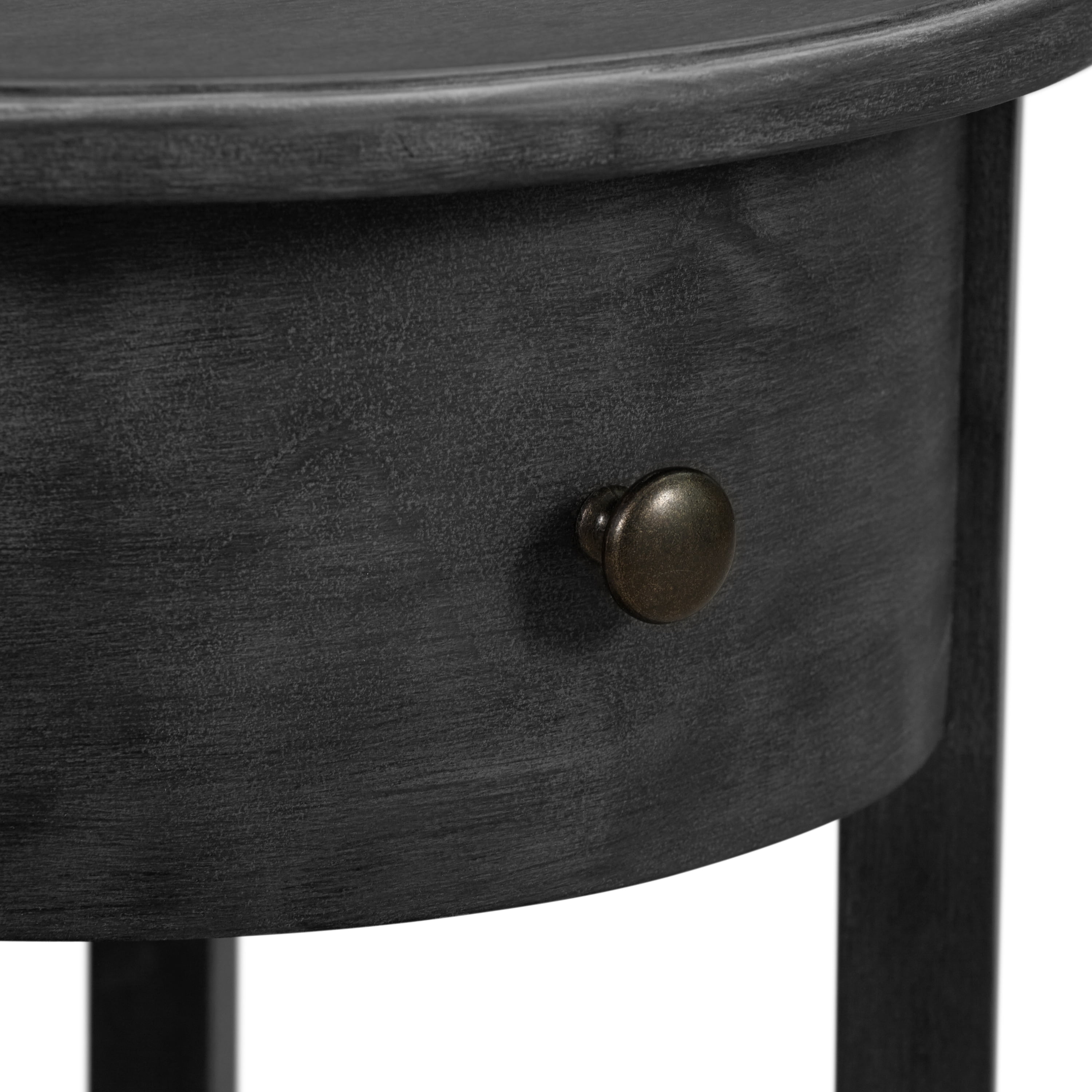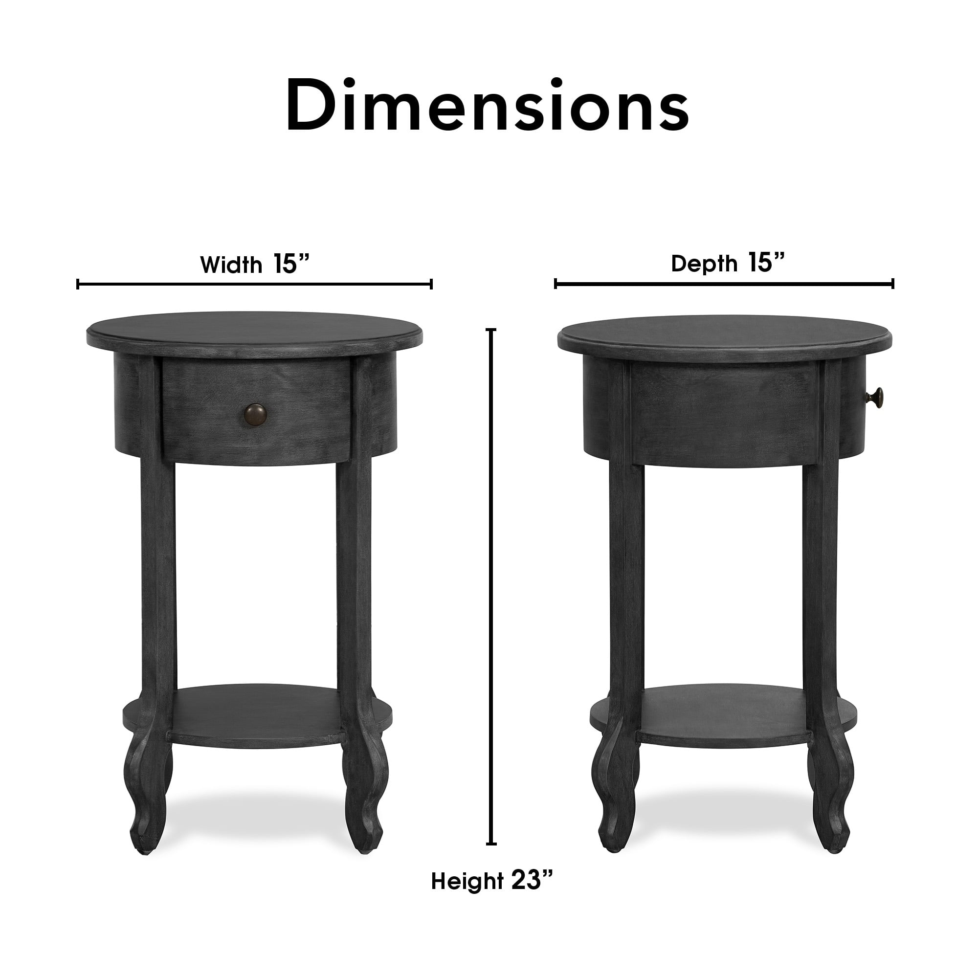 Traditional design style suits a wide range of room styles Storage drawer and lower shelf offer plenty of decor space Round table top is a stylish and practical choice Rich dark finish adds a sophisticated edge to your room Versatile use as a side table or nightstand