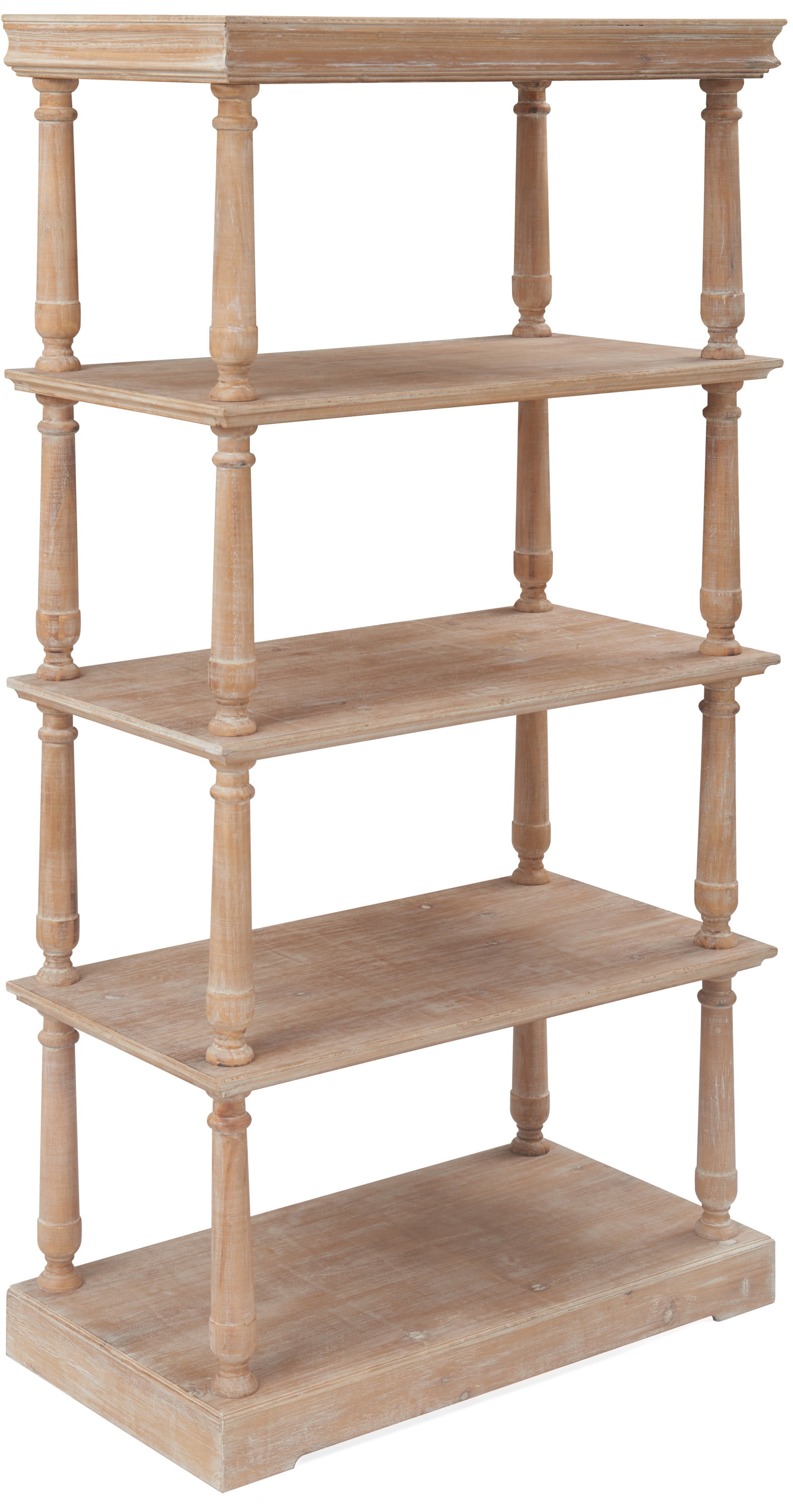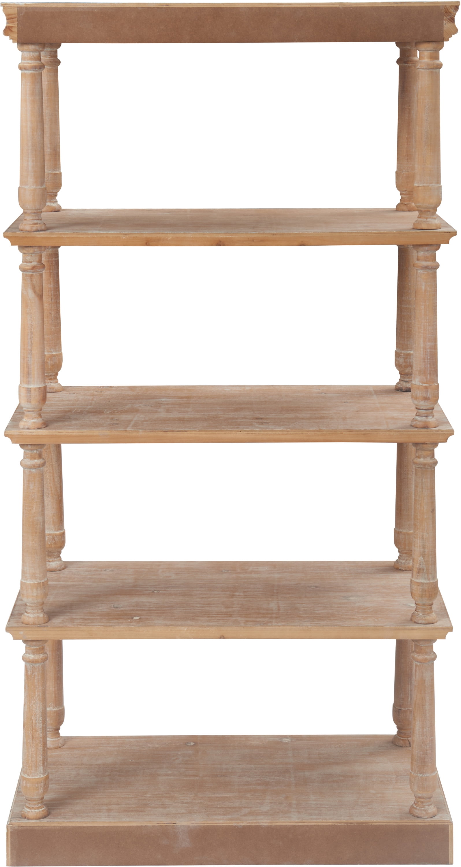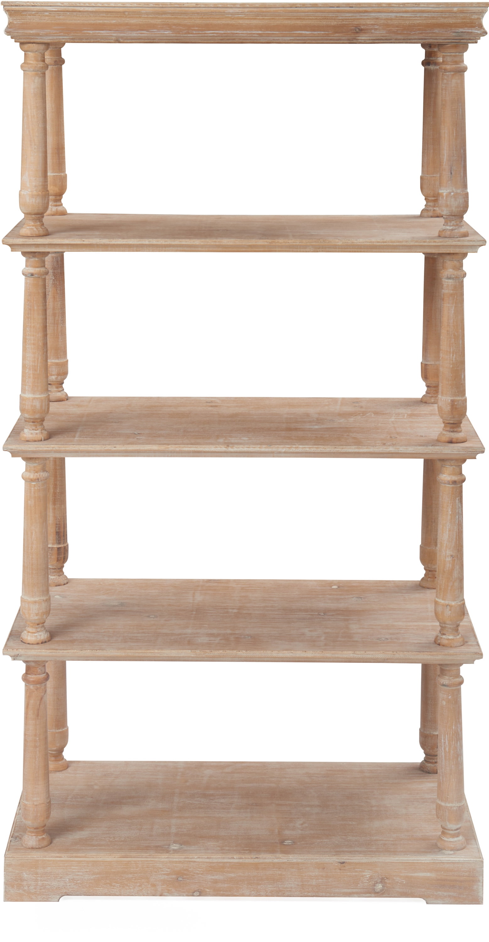 Showcase your favorite books, plants, and keepsakes with this distinguished and versatile bookcase. Four shelves offer plenty of storage for your living room, bedroom, entryway or home office. Enjoy how its captivating classical style enhances your existing decor. Enjoy the eye-catching distressed finish of this charming piece. Features: Handsome bookcase makes an attractive accent to any room with refined style and quality construction Four shelves offer plenty of storage space Classic design elevates your overall decor Featuring a distressed finish that’s sure to make it a show piece Easy assembly required Shelf Weight Capacity: 100 lbs