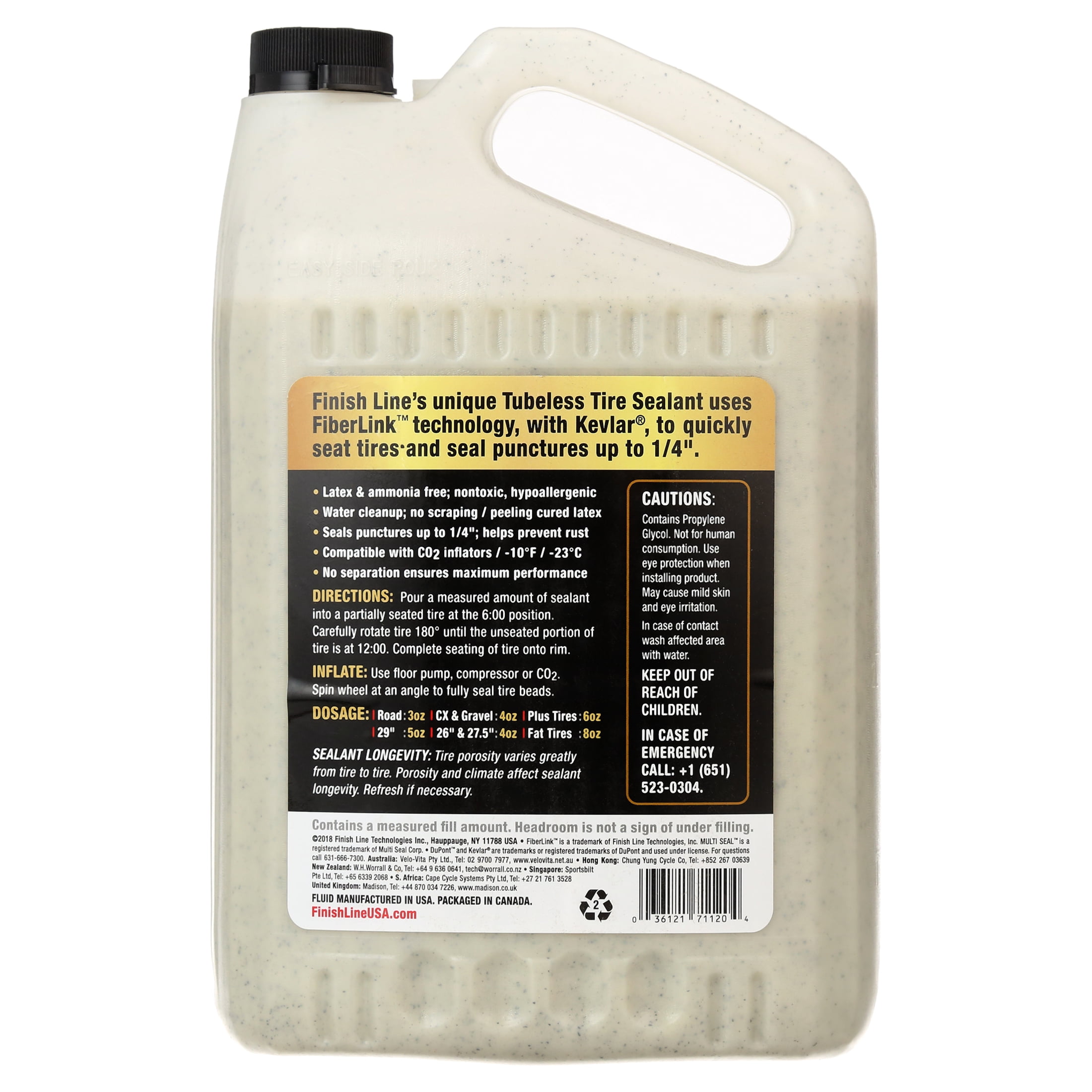 Finish Line sealant is made with fiber link technology and forms a mechanical Seal that packs tighter as you rideThis sealant is latex and ammonia free, so it is naturally non-toxicCleans up easily with water – no more scrubbing or scraping cured latex from tires and rims cleans up easily with water – no more scrubbing or scraping cured latex from tires and rimsDosage guide: road = 3 oz., cx/gravel = 4 oz., 26″/27.5″ = 4 oz., 29″ = 5 oz., fat = 8 oz.C02 compatible, no shaking required, effected to -10F