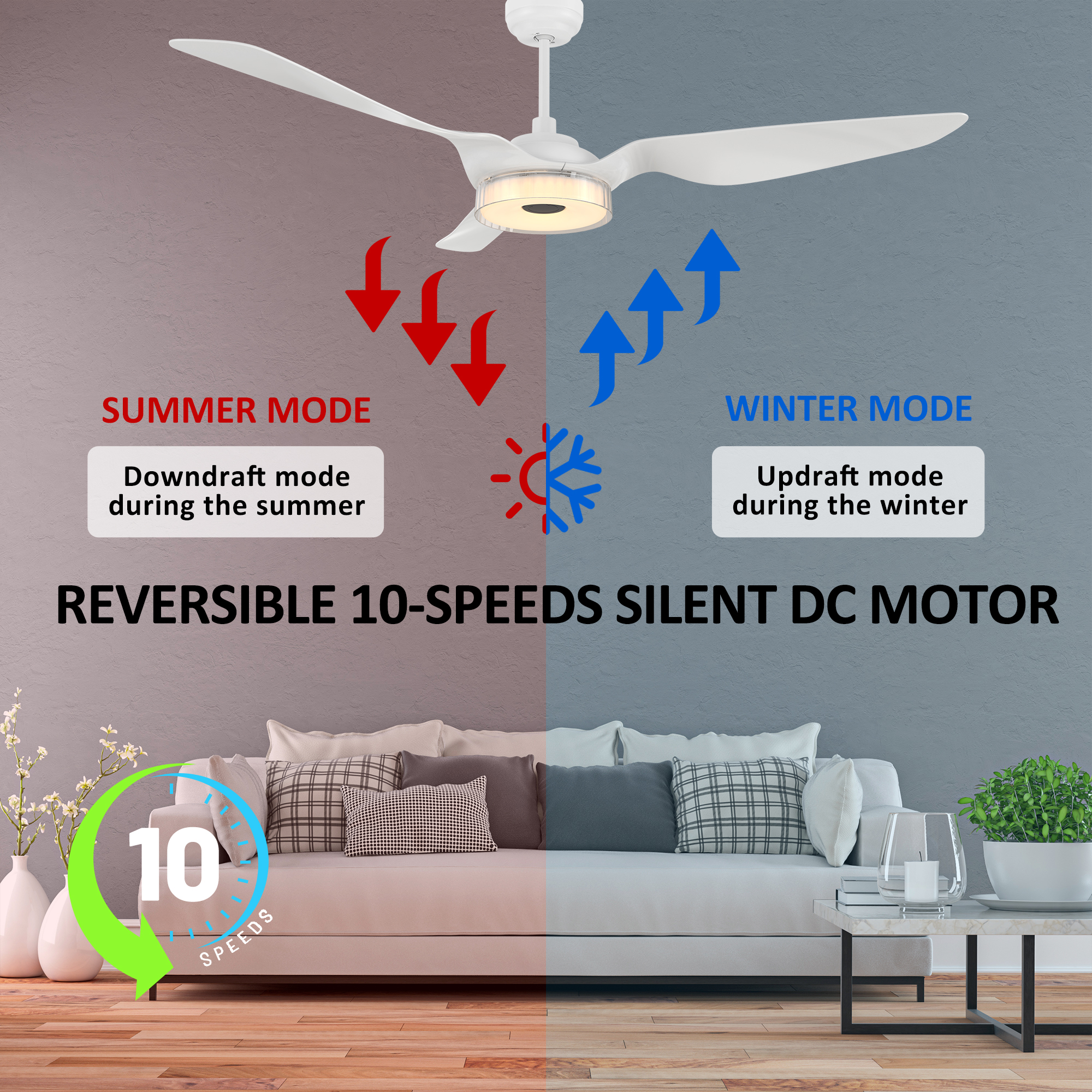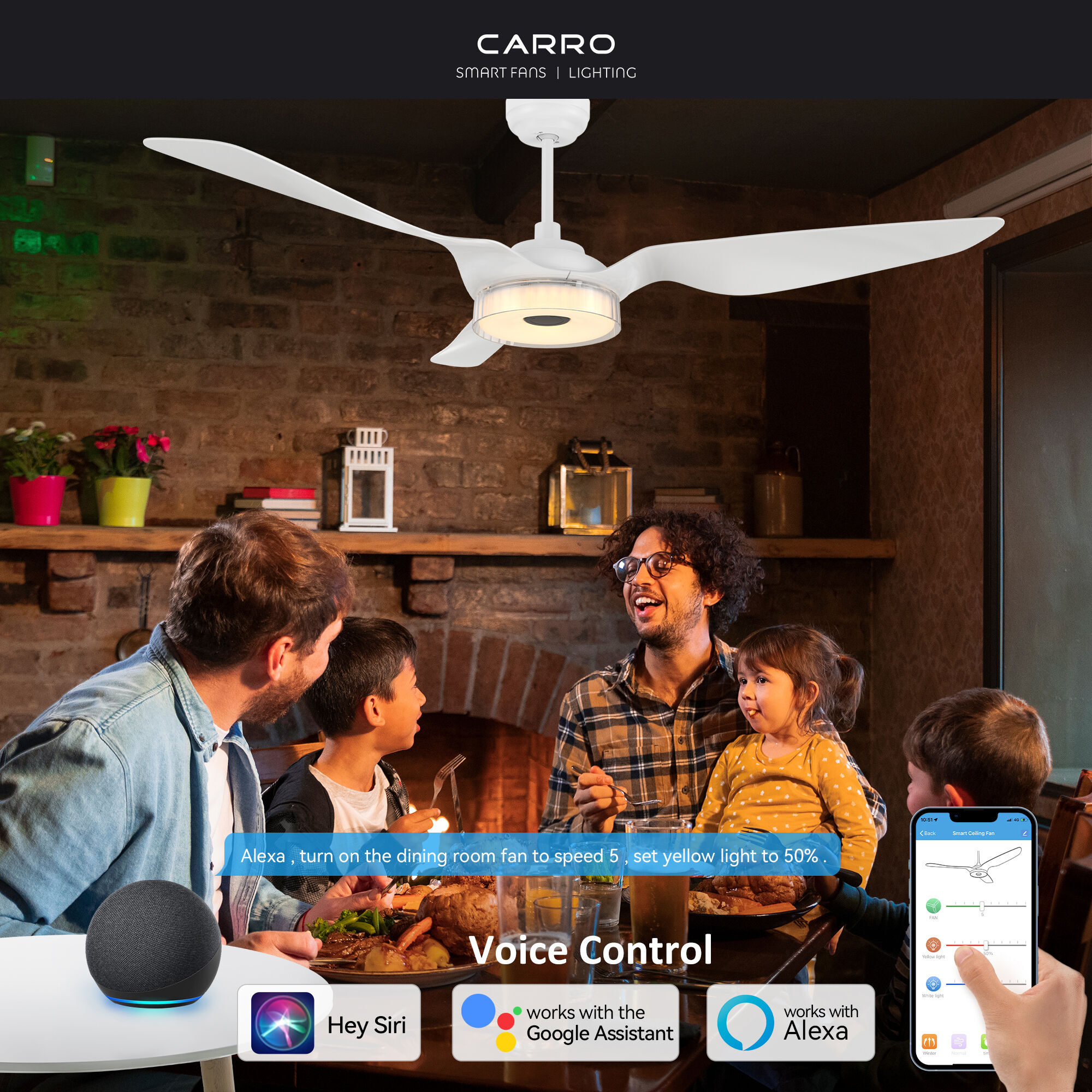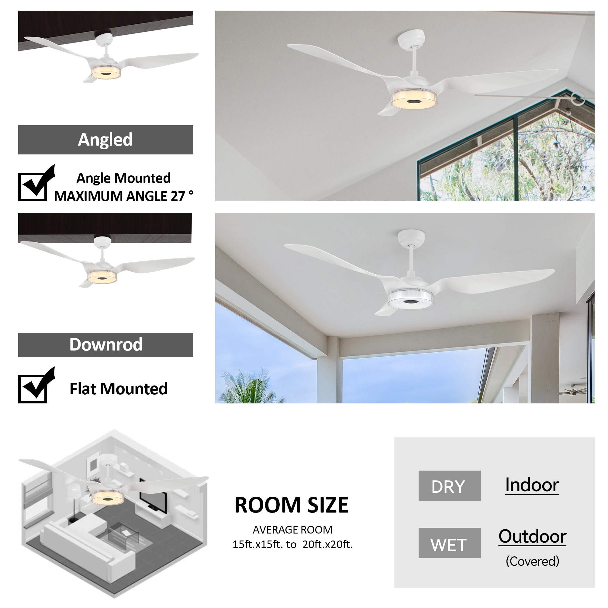 The Finley 60-in smart ceiling fan offers a combination of cooling, illumination, and aesthetics, making it an ideal choice for spacious indoor living areas. With its sleek design and White finish, this Wifi-enabled smart ceiling fan showcases a blend of simplicity and elegance. It incorporates very strong ABS blades and has an Integrated 4000K LED daylight, enhancing both functionality and style. The fan provides convenient features such as a Remote control, Wi-Fi apps, Siri Shortcut compatibility, and Voice control technology, making it compatible with Amazon Alexa and Google Home Assistant for effortless fan customization.