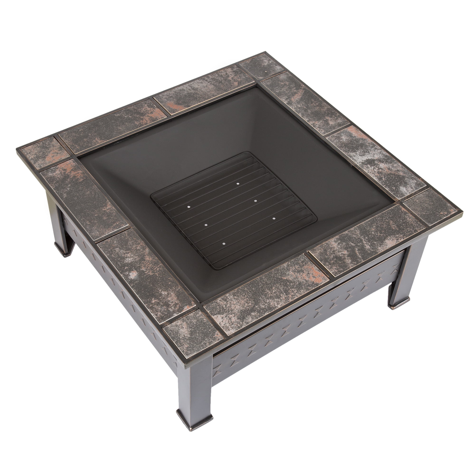 The 32? Square Marble Tiled wood burning fire pit with 21? Fire Bowl by Pure Garden has a antique bronze finish that is attractive to match any outdoor living space décor. Relax by the warmth of an inviting fire on a cool summer night or crisp fall evening. Enjoy the warm glow on your patio and set the ambiance for a relaxing outdoor experience. IMPORTANT: Avoid buying counterfeit products and transacting with unauthorized sellers. Look for our logo on the packaging for every one of our products. Pure Garden is committed to providing the consumer with the absolute best price and value on our entire line of products, which we ensure by applying a rigorous Quality Control process.