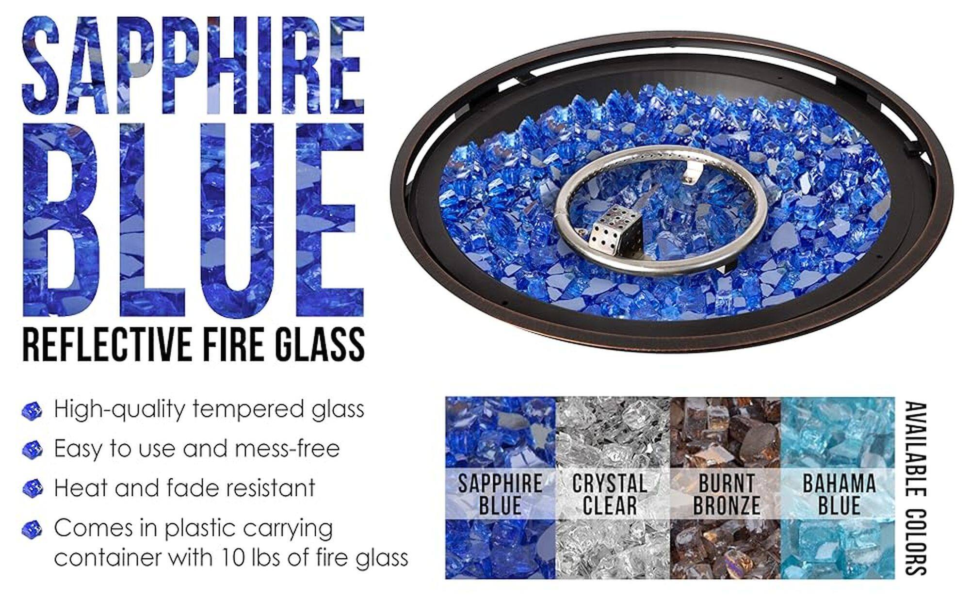 Enhance your fire pit with this Fire Sense sapphire blue reflective fire glass. Its color brings extra sparkle and vibrancy to the flames, and it adds an interesting effect to your patio or fireplace. This Fire Sense sapphire blue reflective fire glass is easy to handle and resists fading for added longevity.