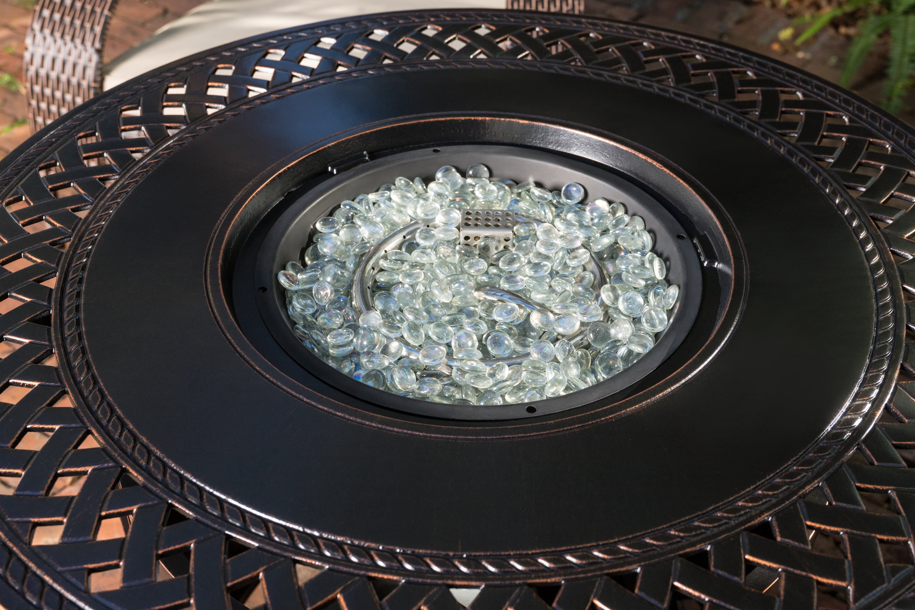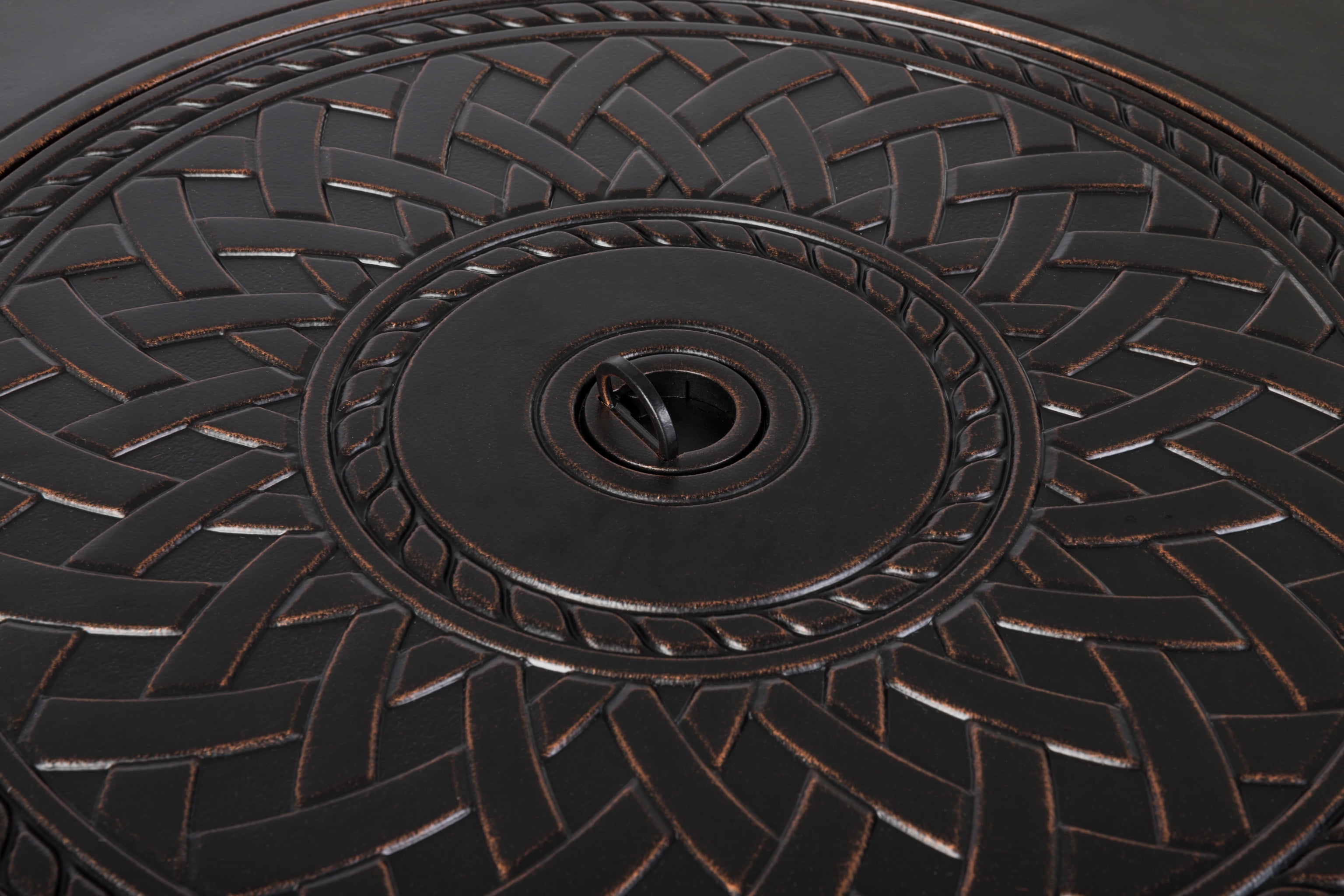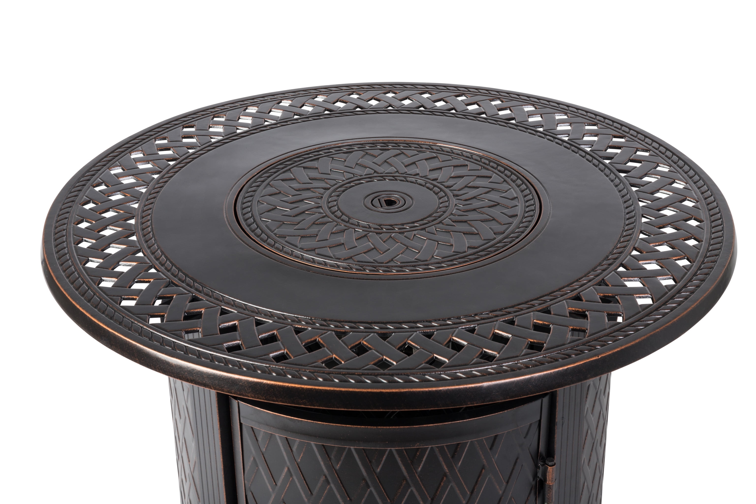 Fire Sense Wagner Woven Aluminum Gas Fire Pit Table with Fire Bowl Lid- Bronze Finish – Round – 34″