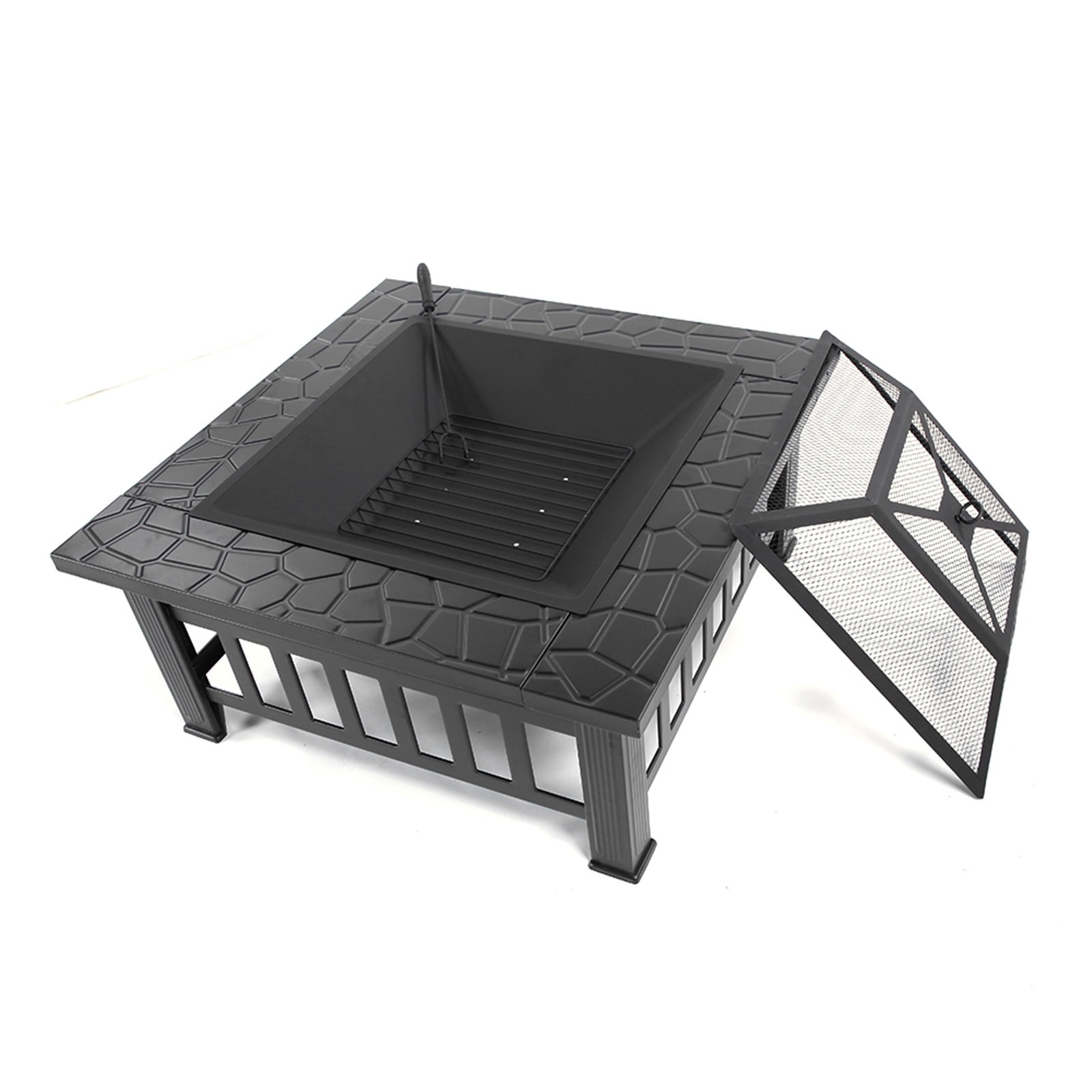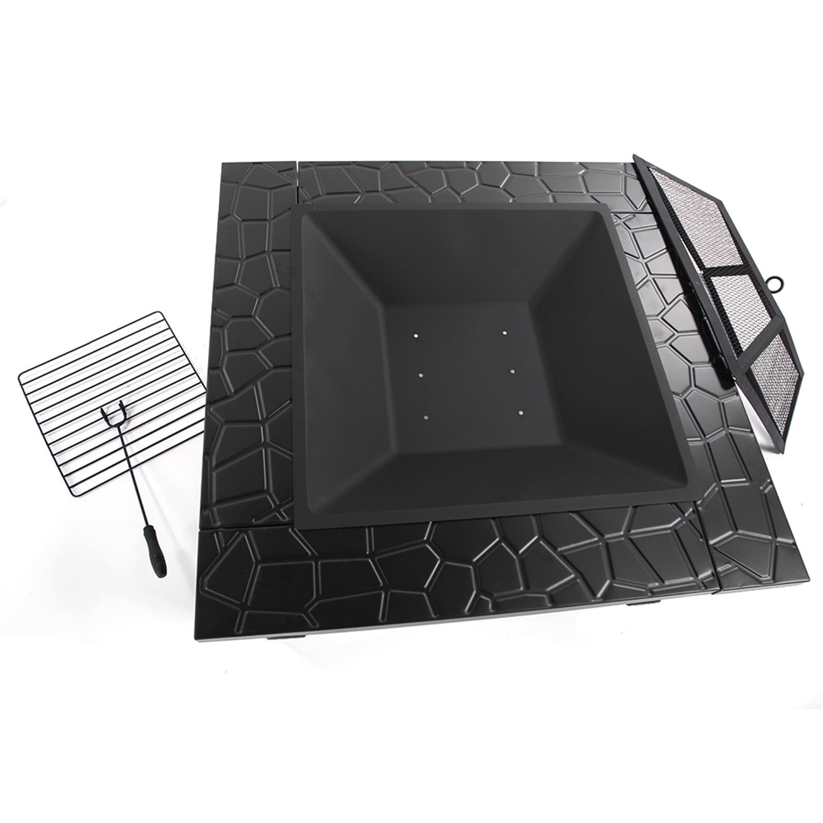 Firepit for Outside, SEGMART 32″ Outdoor Fire Pit, Wood Burning Metal Square Fire Pit Table with Fire Poker, Grill for Camping, Outdoor Heating, Bonfire and Picnic, Black