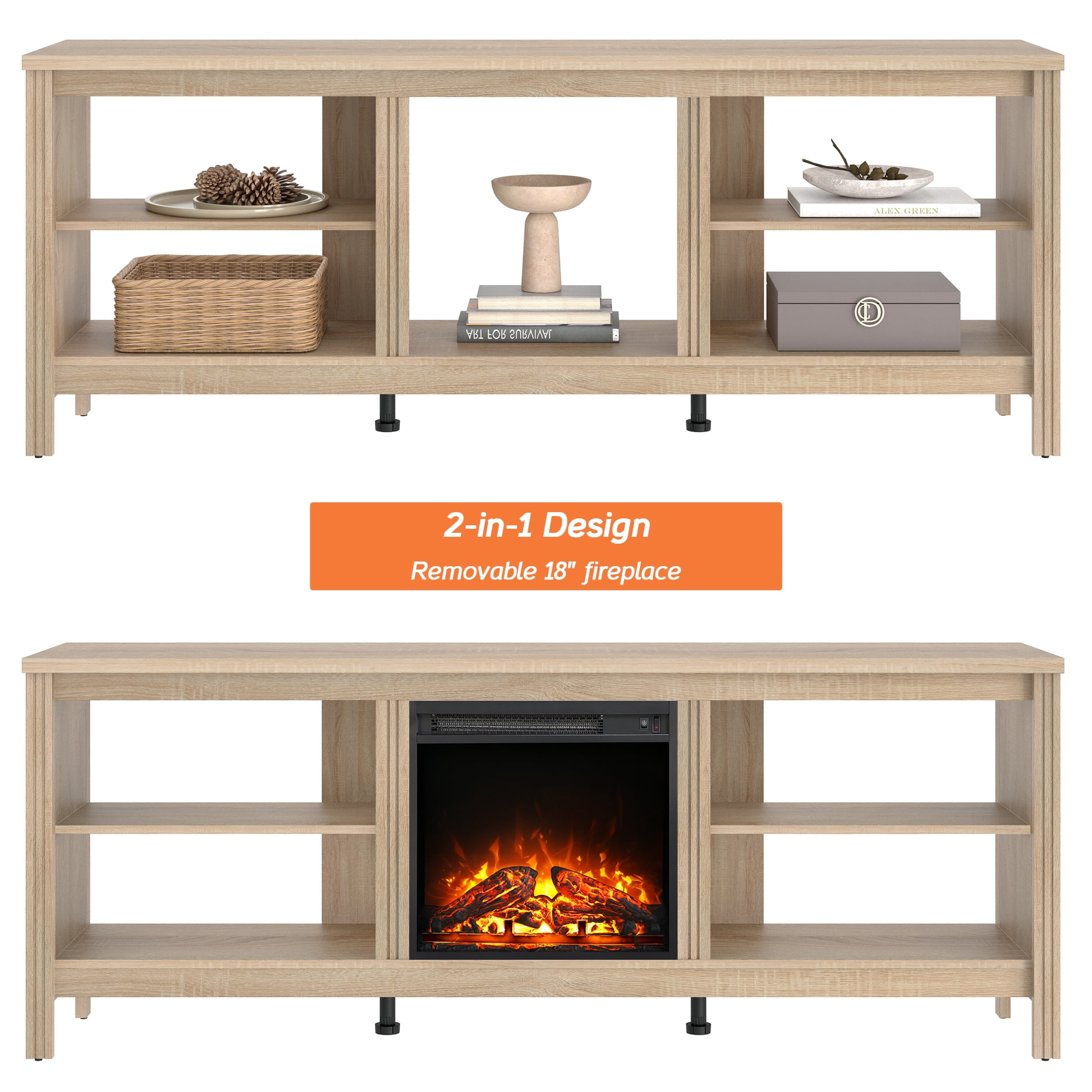 Fireplace TV Stand for 75 inch TV, Oak Entertainment Center with 6 Storage Cabinets for Living Room,Bedroom 70 inch