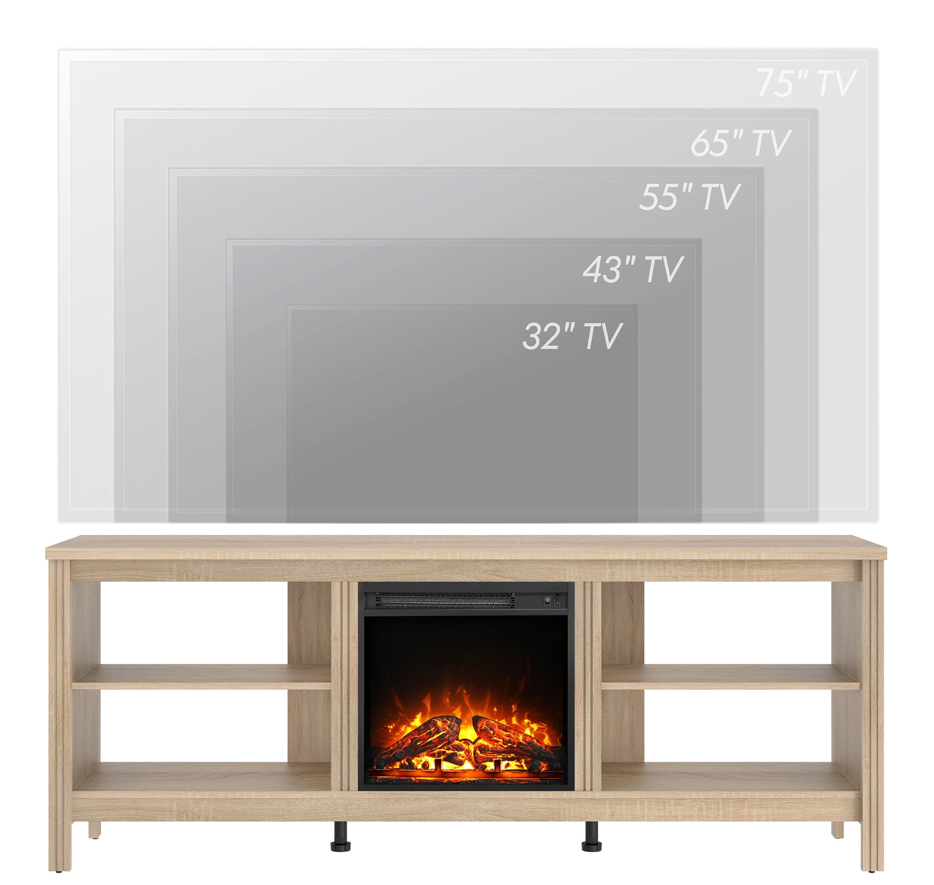 Note: The telvision stands and fireplace insert are shipped separately, so you may receive two packages at different times. The oak fireplace tv stand combining 4 storage with an electric fireplace can be used with or without heat. You can put the fireplace in the cabinet to bring warmth to the cold winter and enjoy the 3d realistic flame effect in the summer. With the rustic style, this fireplace entertainment center can greatly upgrade your living space.